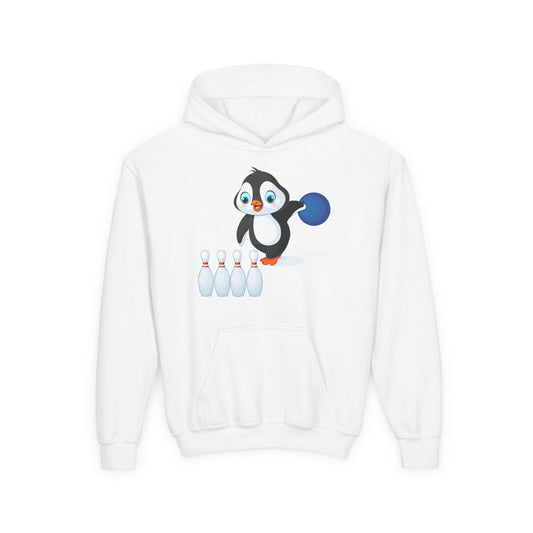 Youth Heavy Blend Hooded Sweatshirt - Adorable Penguin Bowling