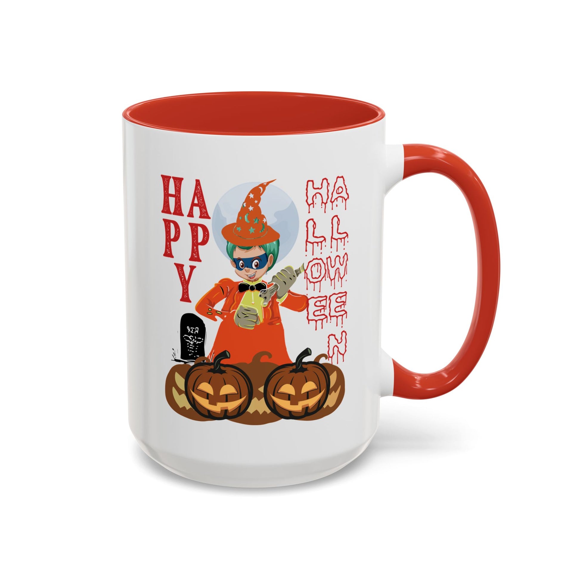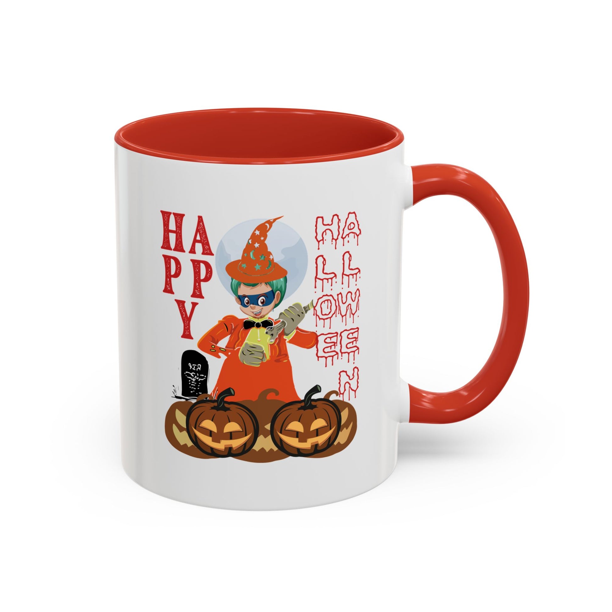 Enjoy your favorite hot beverage in this vibrant Accent Coffee Mug. The playful design makes it a perfect addition to your kitchen or office, creating a delightful atmosphere with its eye-catching colors. Ideal for coffee lovers and Halloween enthusiasts, this mug adds a festive touch to your morning routine or spooky celebrations. Whether it’s a cozy evening with friends, a daily pick-me-up at work, or a festive Halloween gathering, this mug is sure to bring a smile. Perfect for gifting during holidays like Halloween, or as a delightful surprise for friends and family who love collecting unique kitchenware.