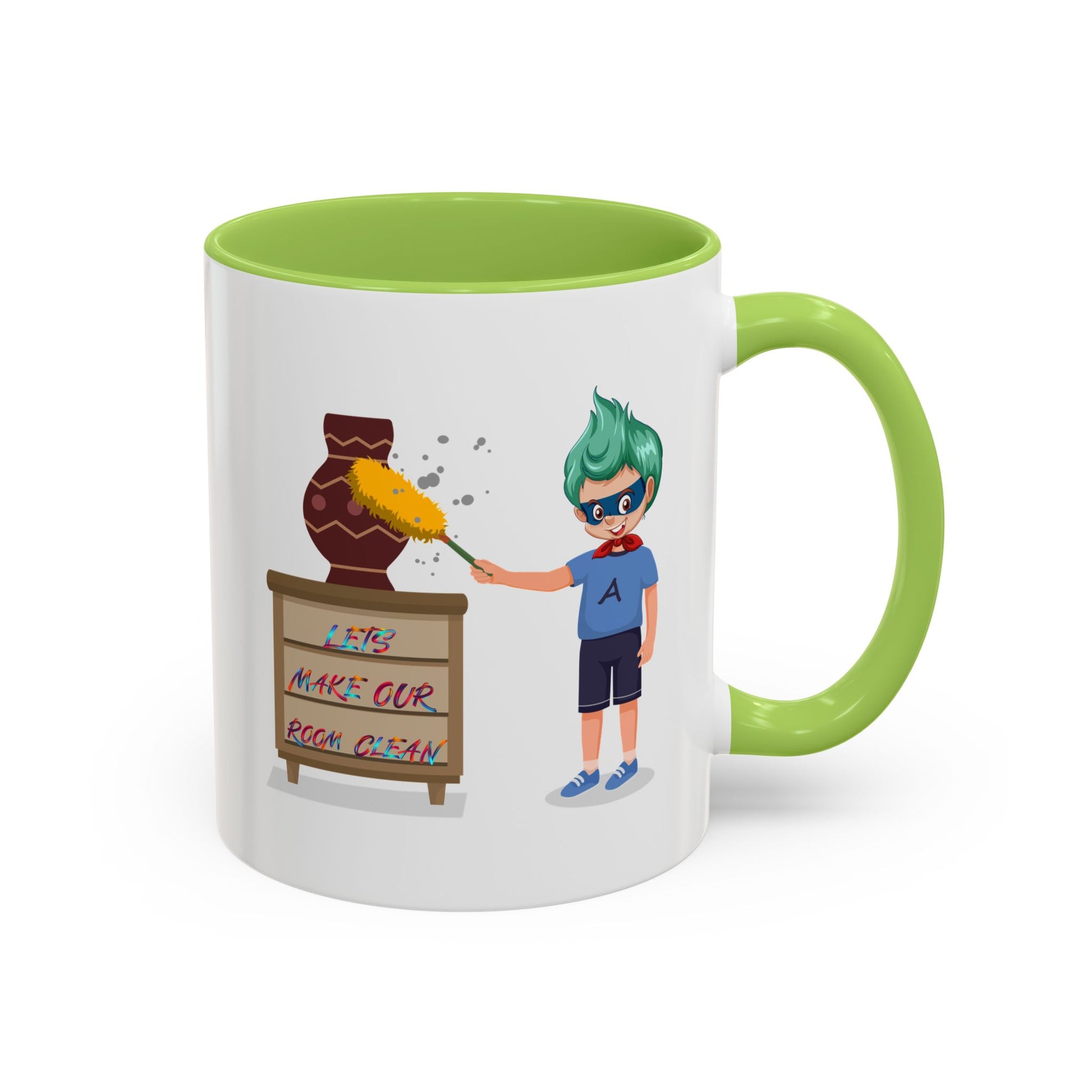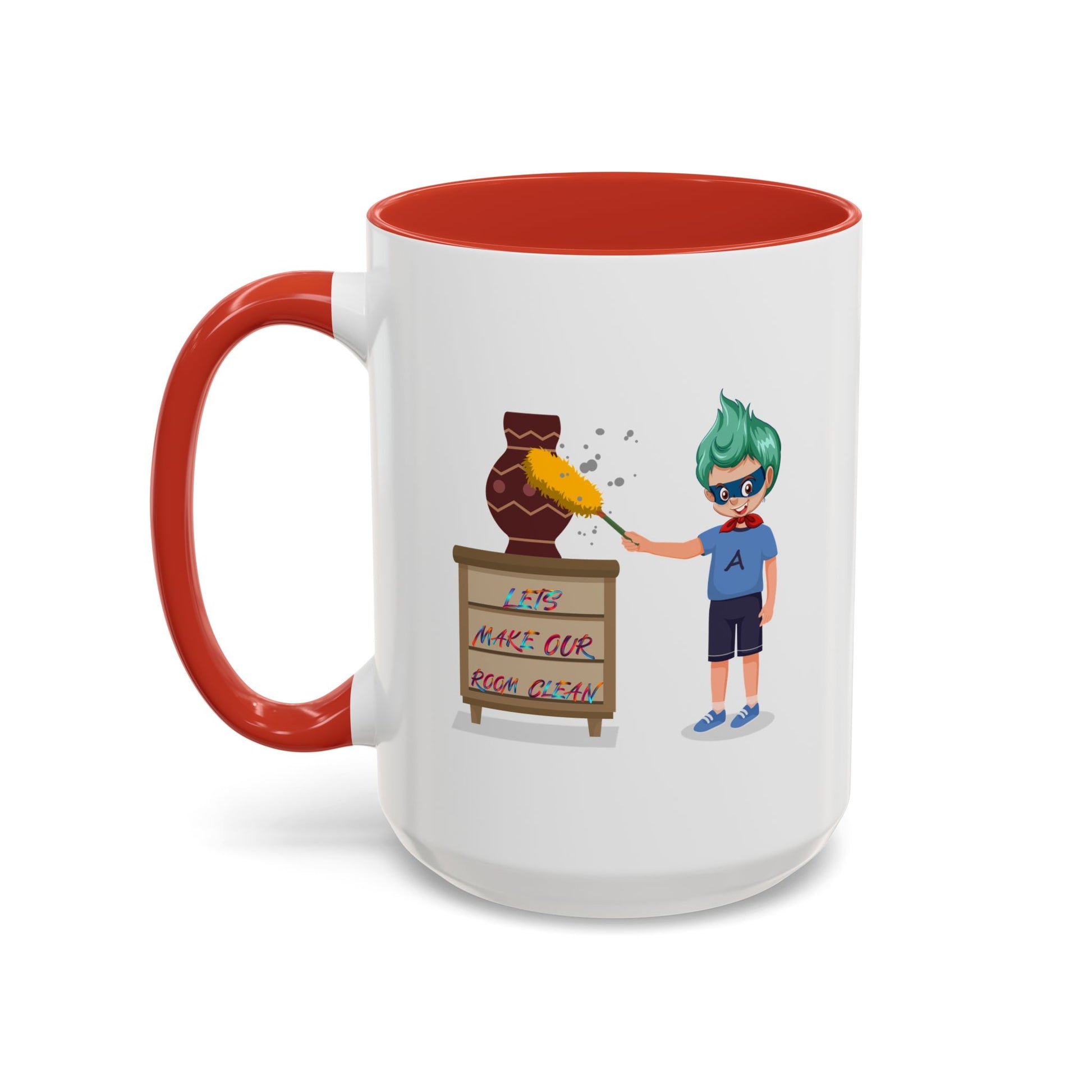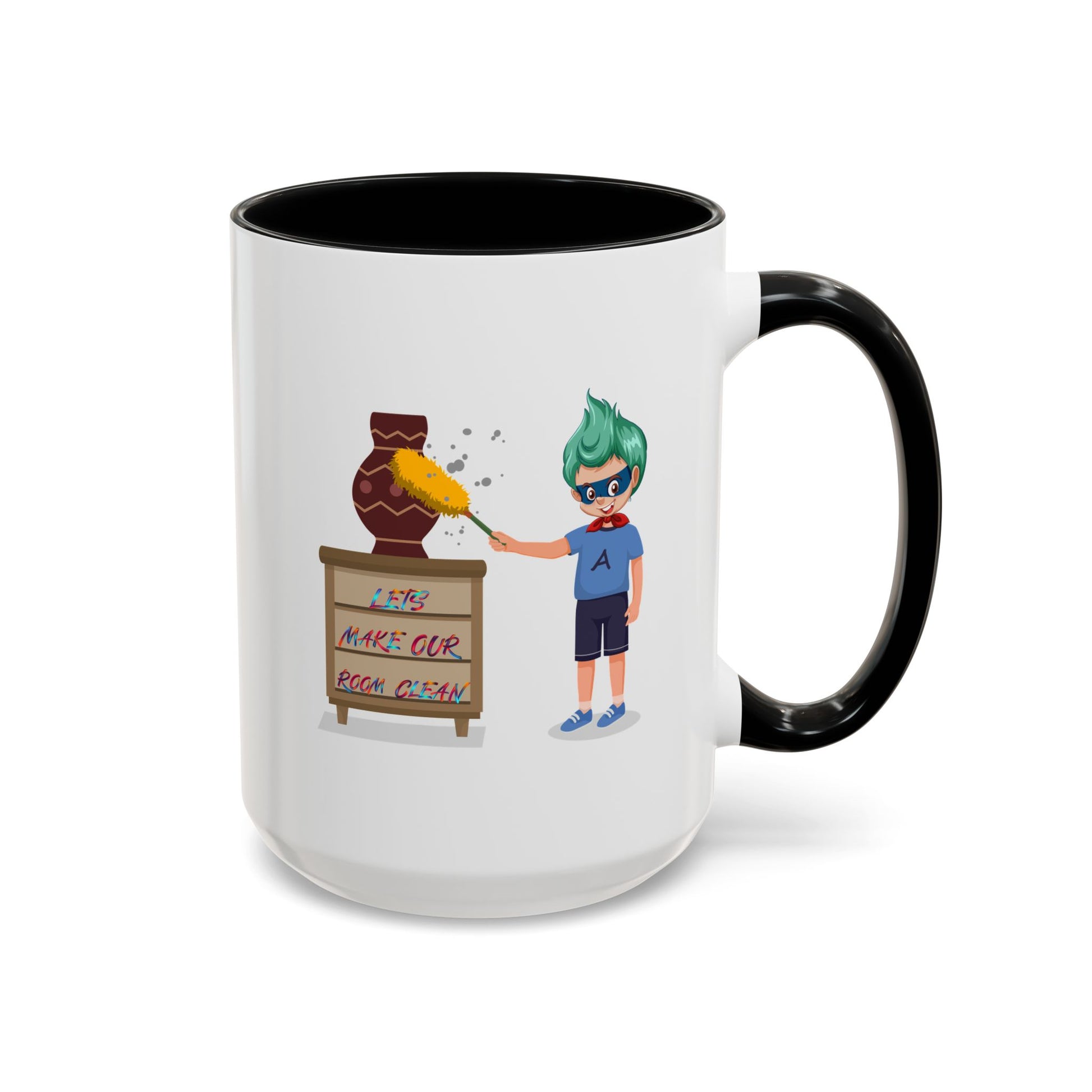 Accent Coffee Mug - Super kiddo cleaning a vase