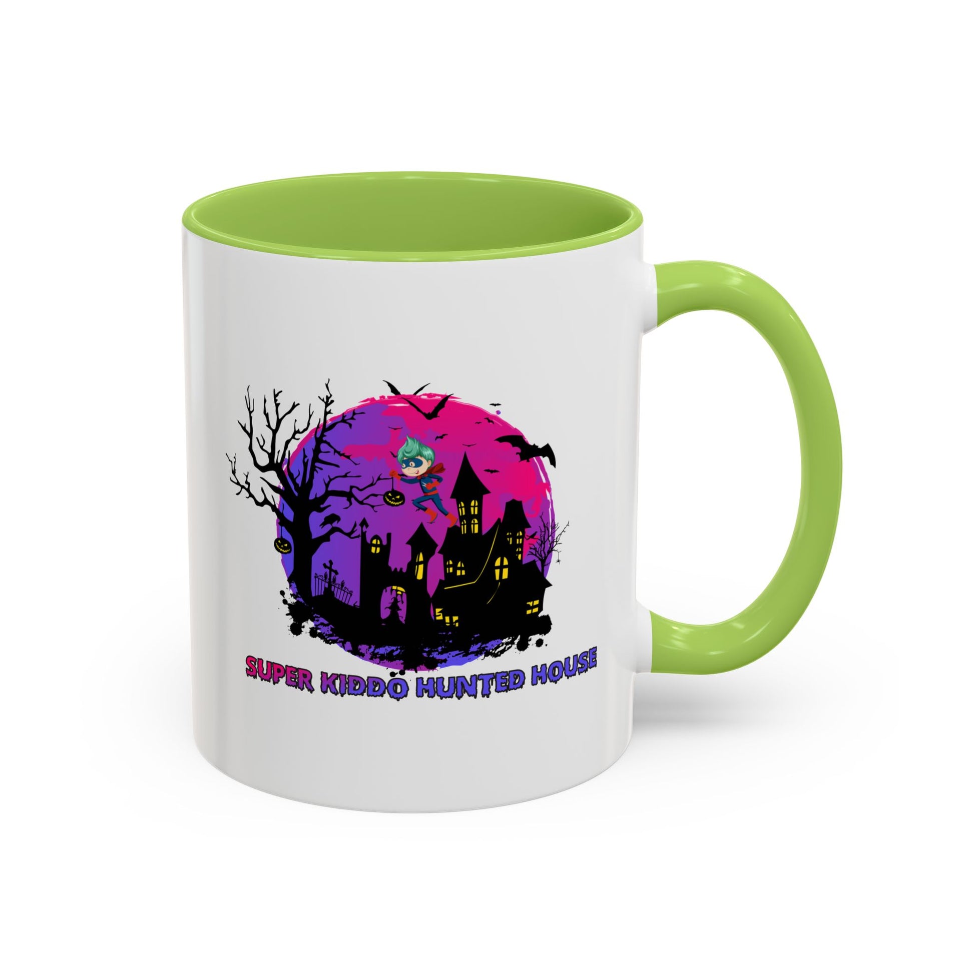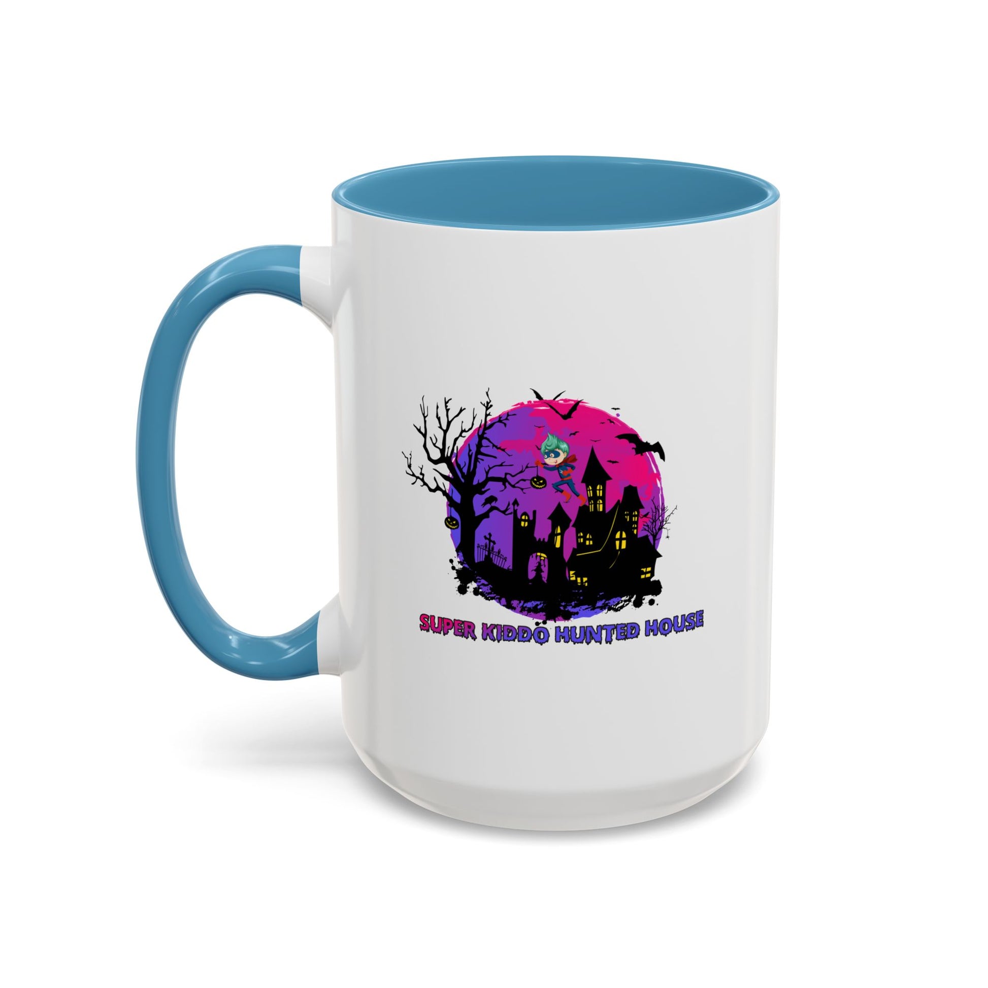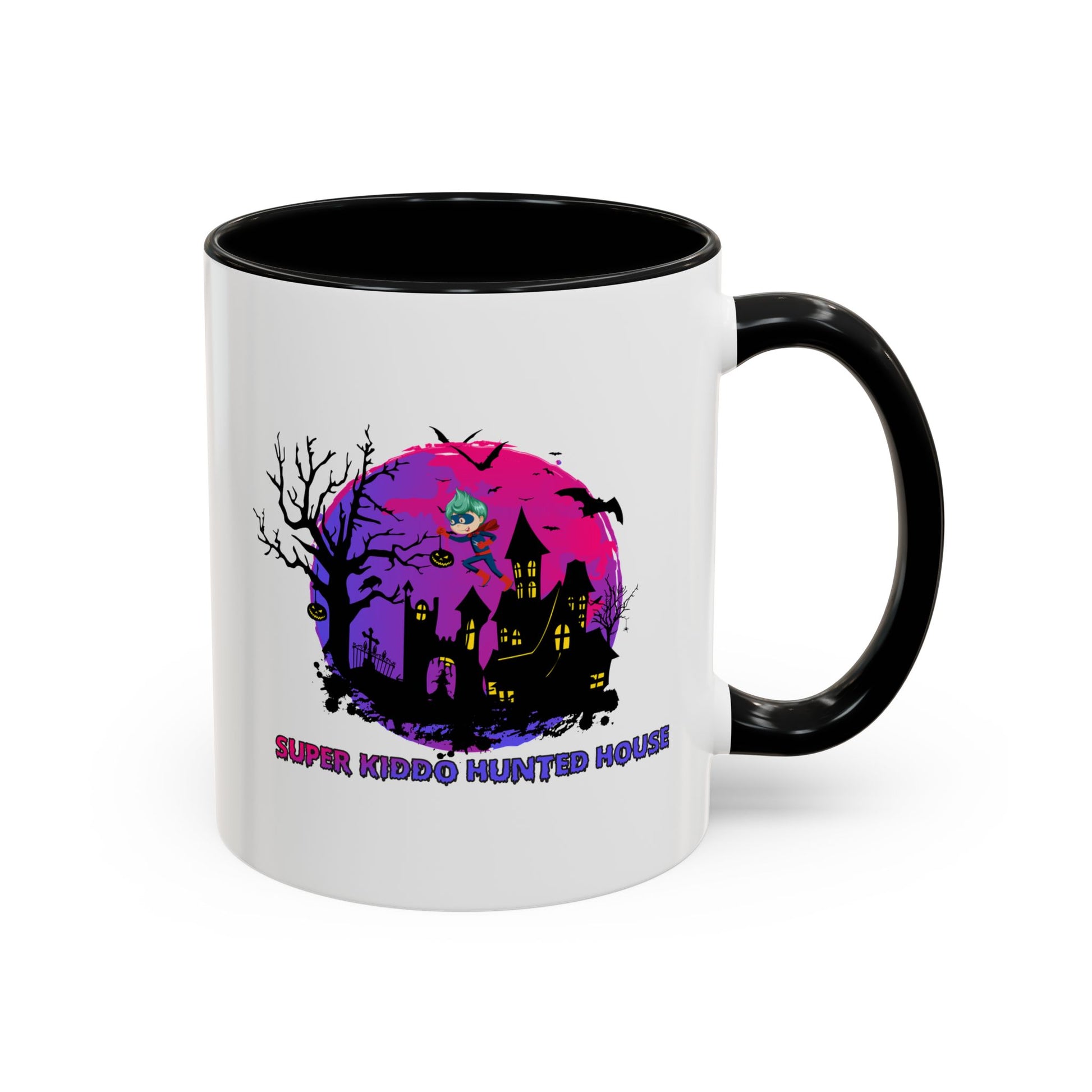 Accent Coffee Mug - Super kiddo flying on hunted house