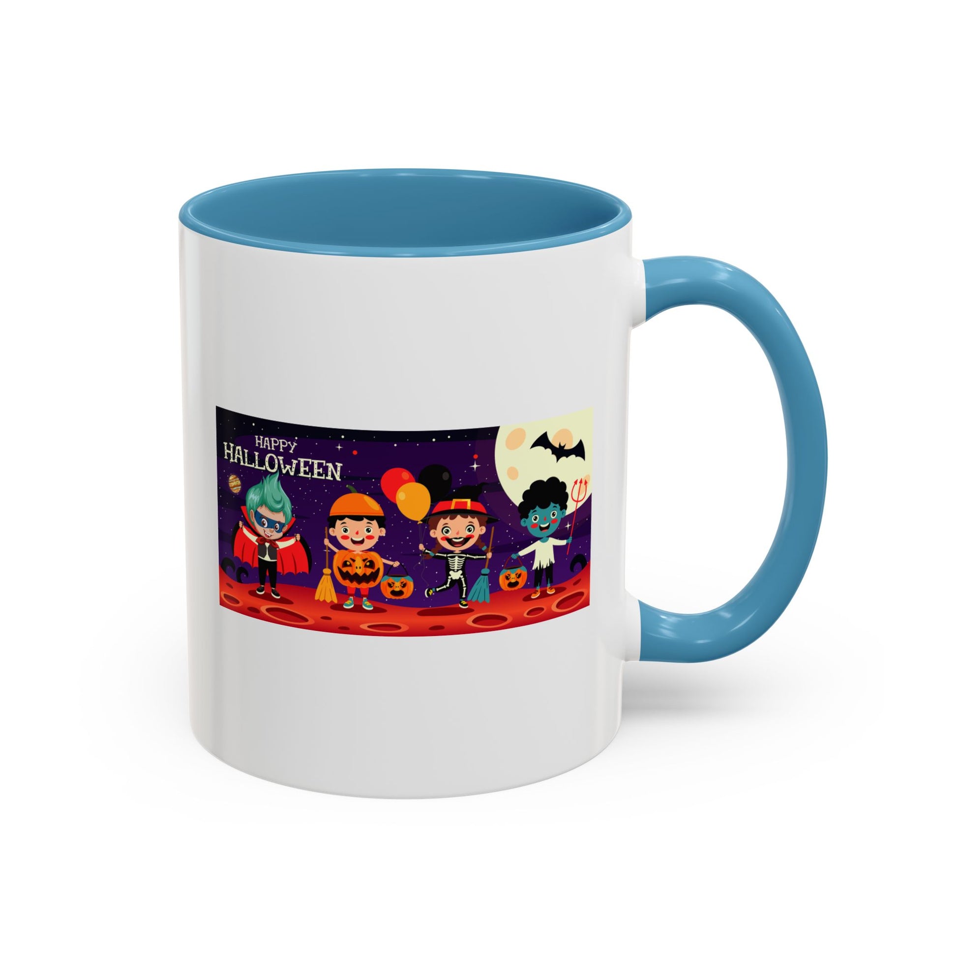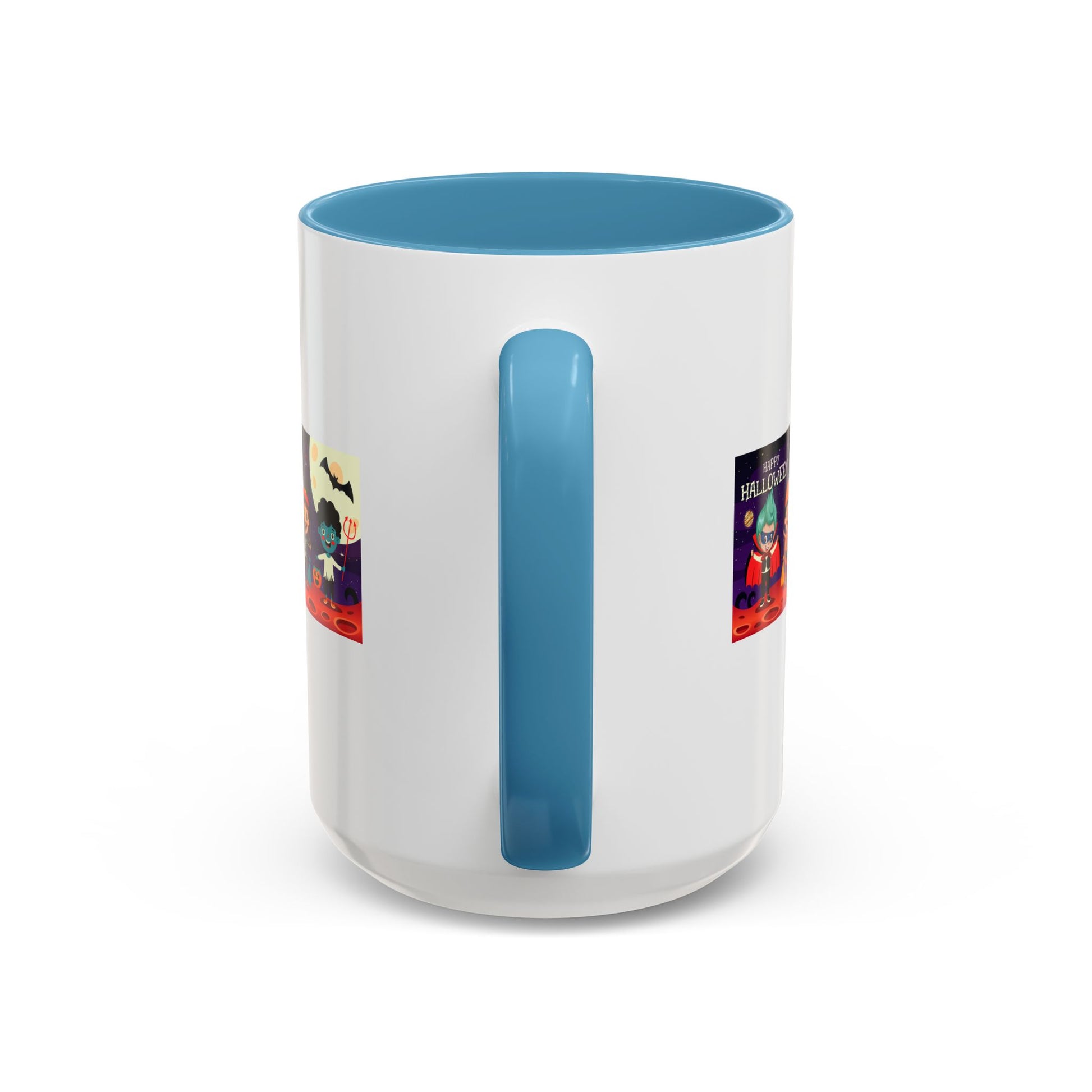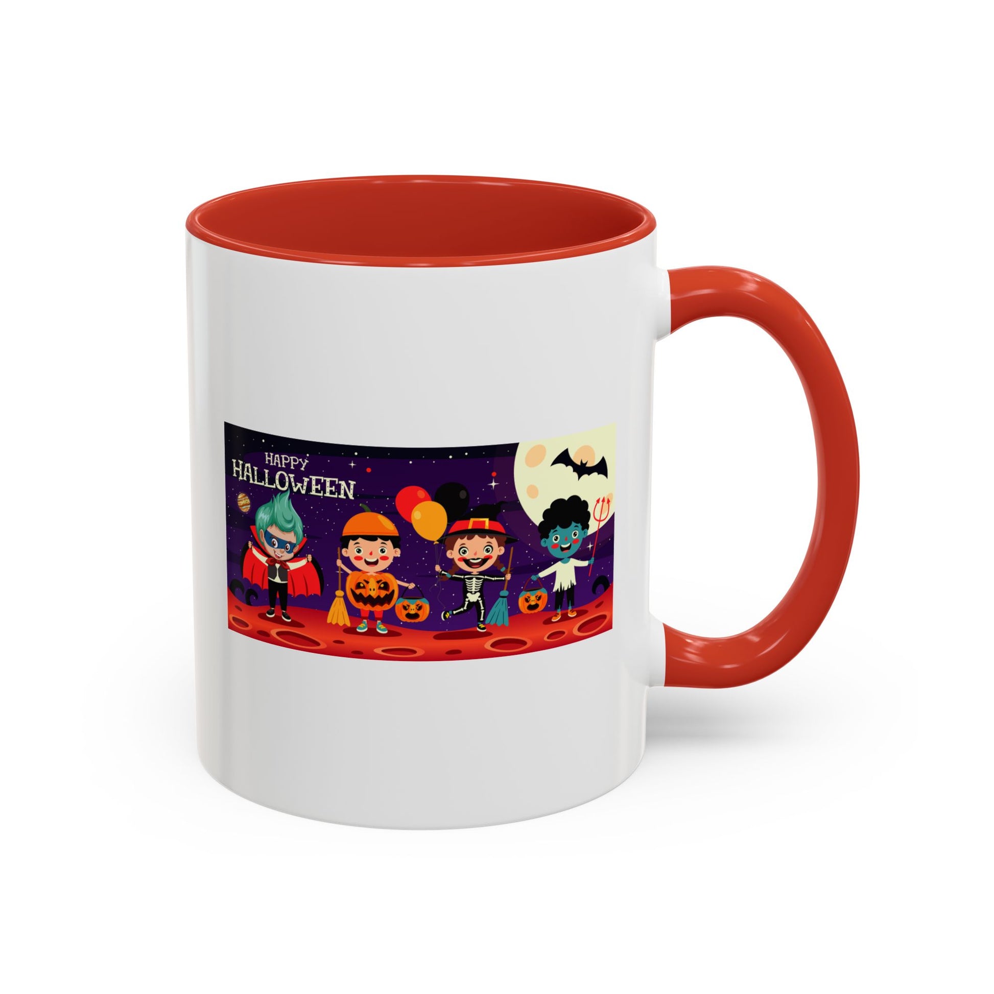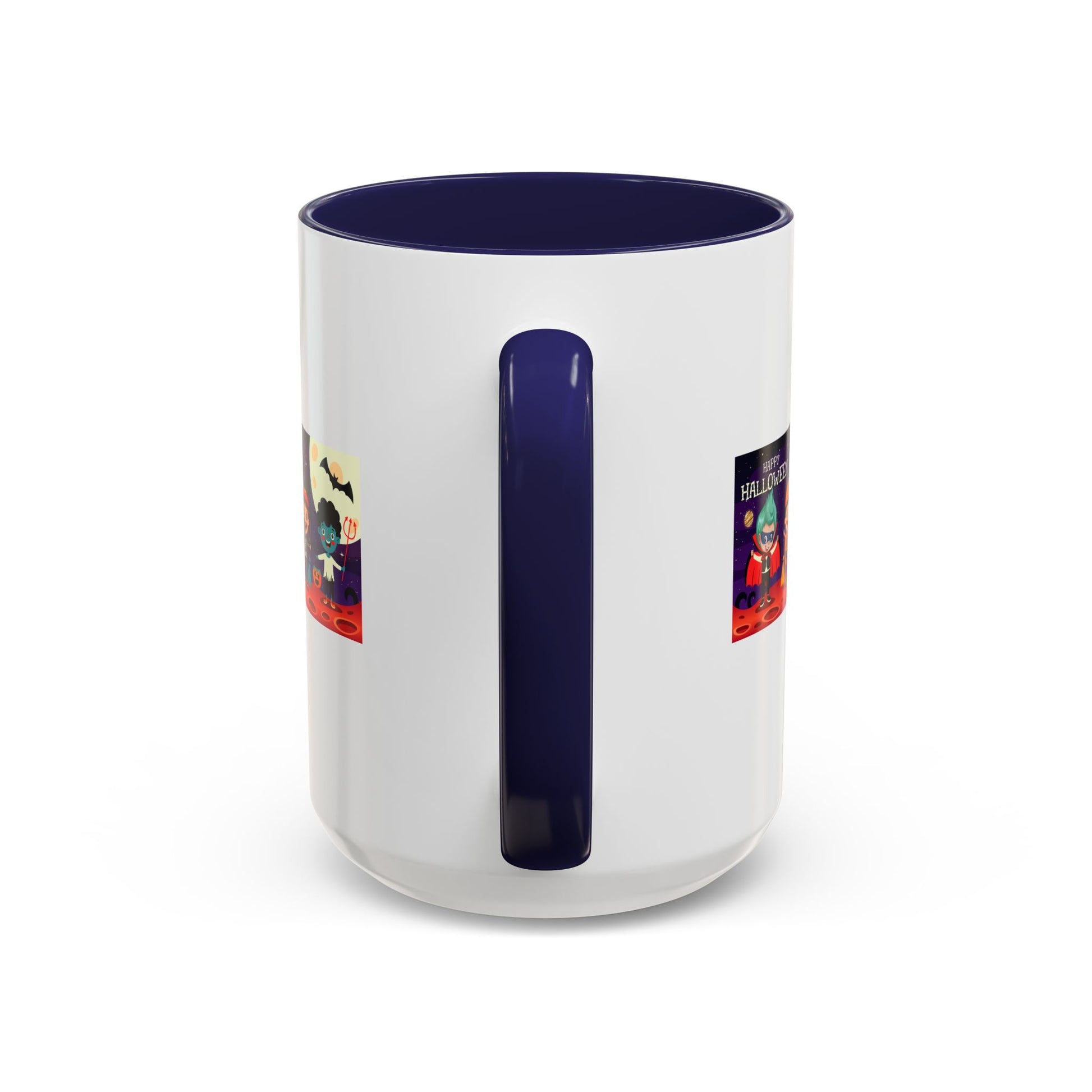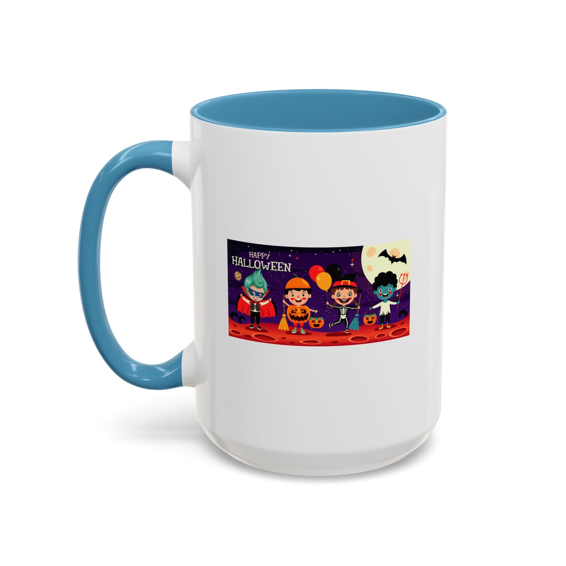 Accent Coffee Mug - Super kiddo with friends on holloween