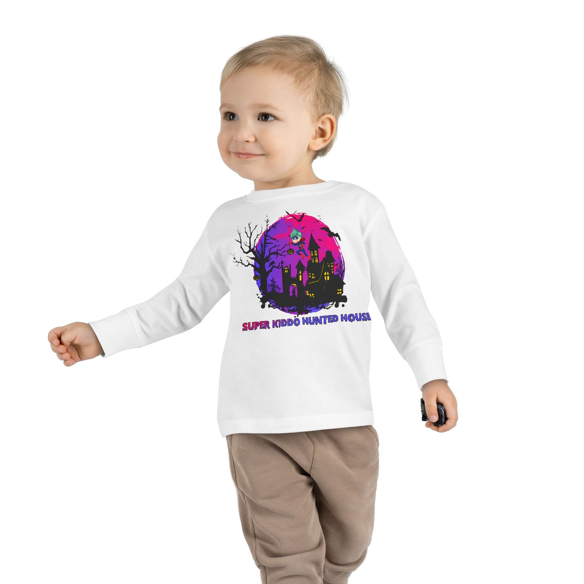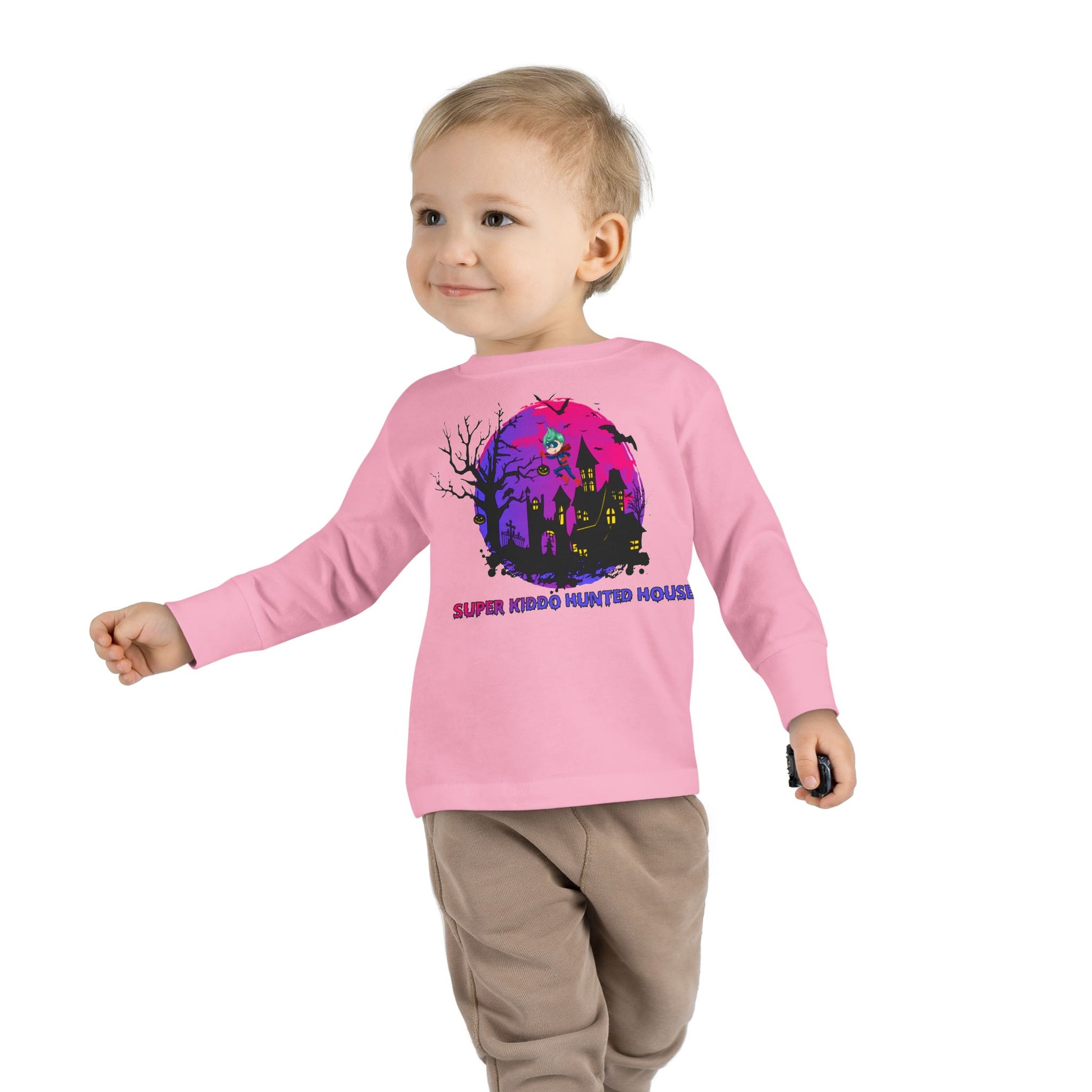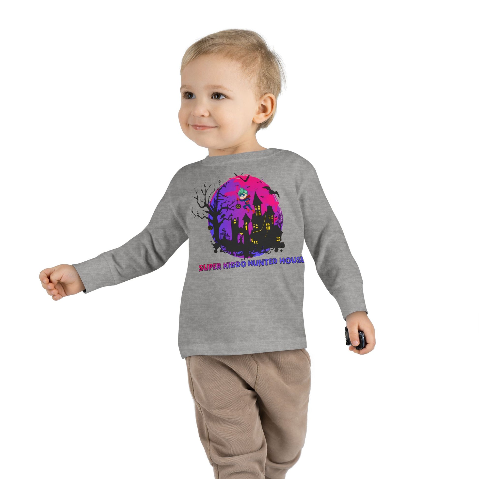 Toddler Long Sleeve Tee - Super kiddo flying on hunted house