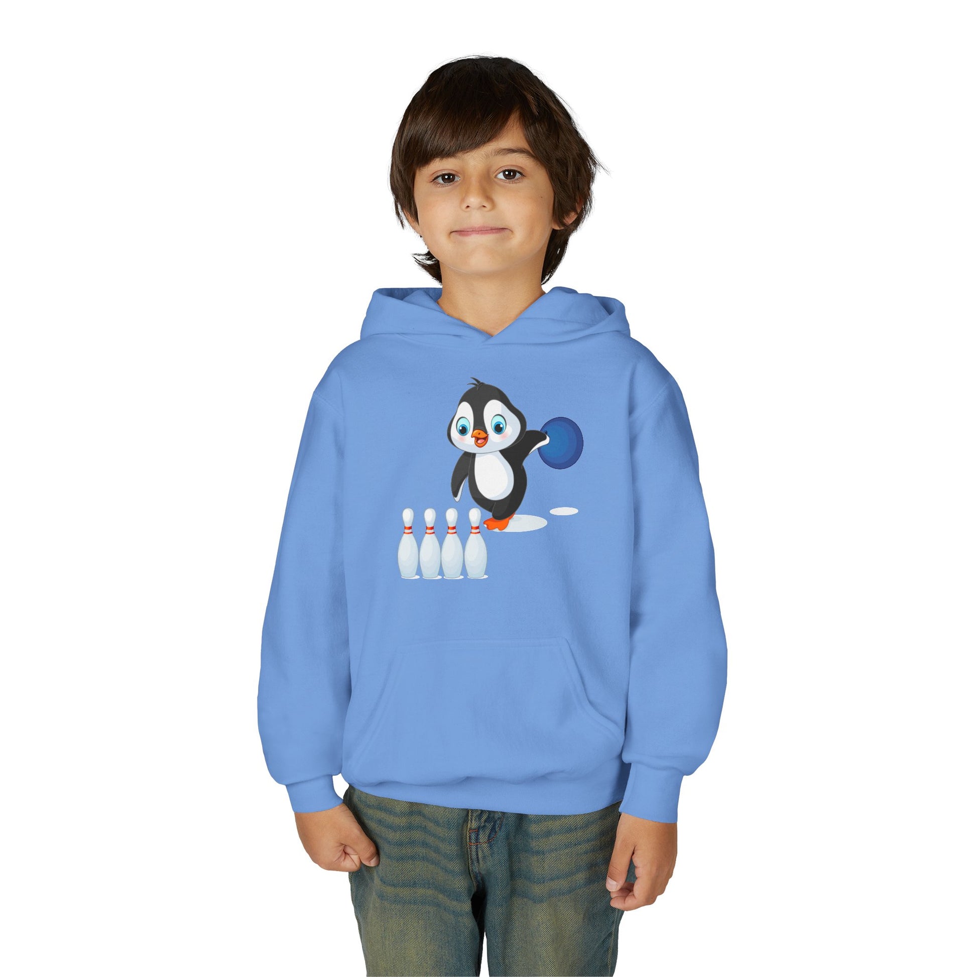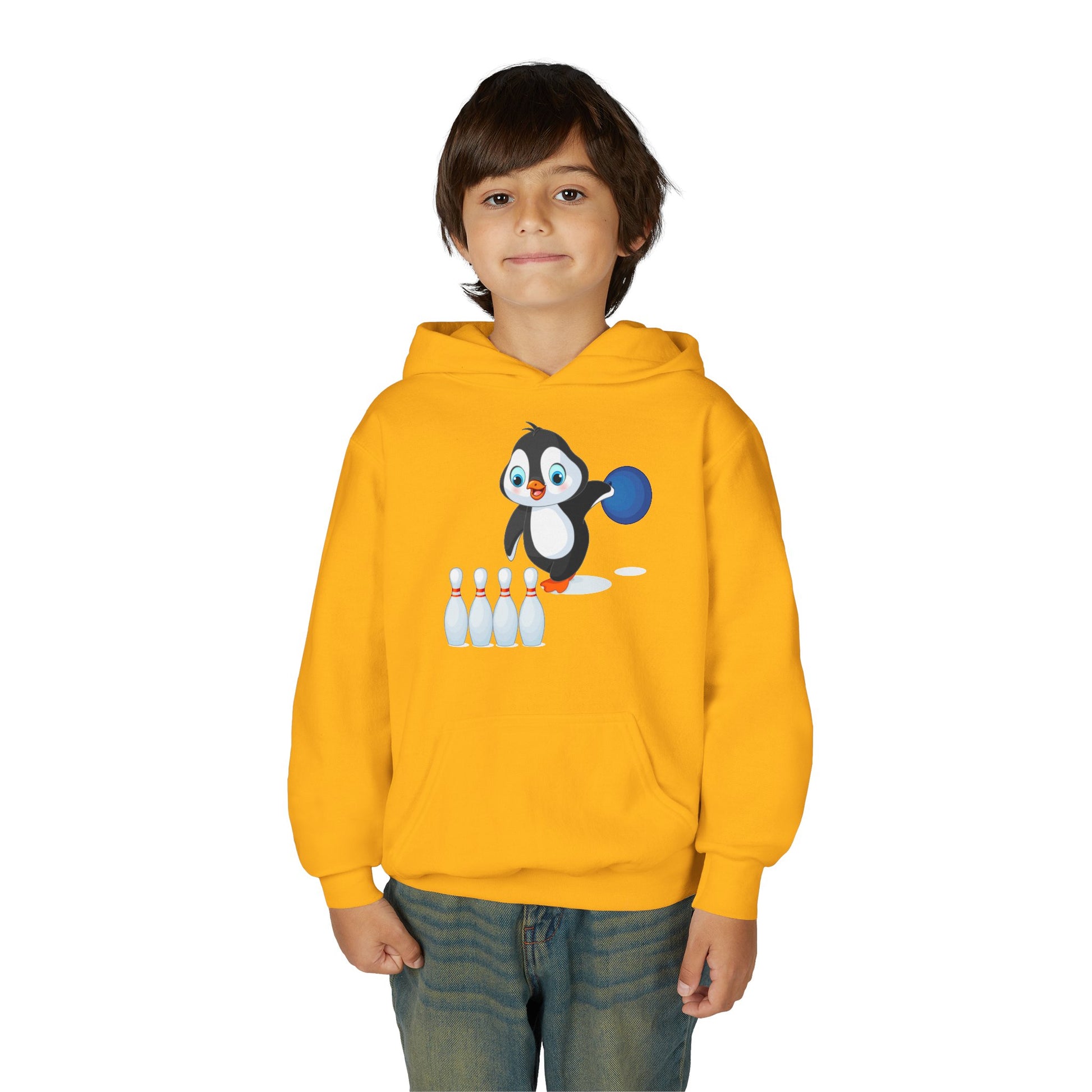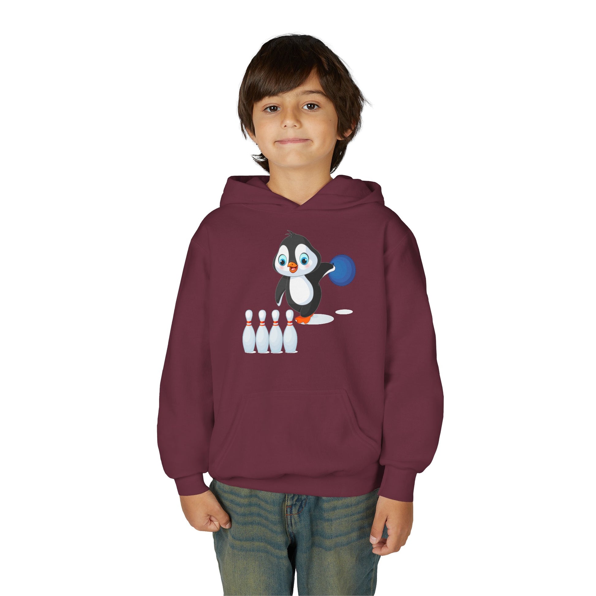 Youth Heavy Blend Hooded Sweatshirt - Adorable Penguin Bowling
