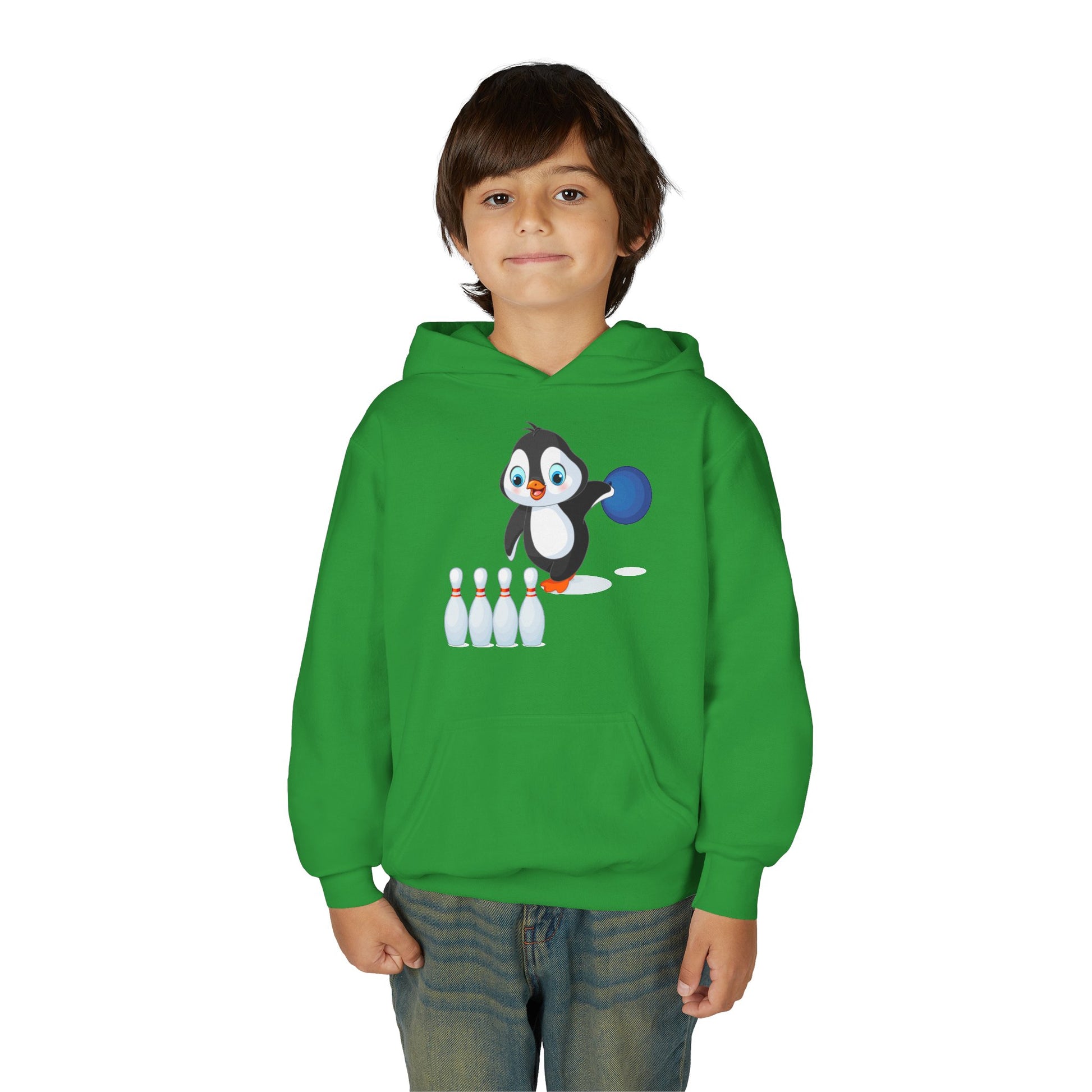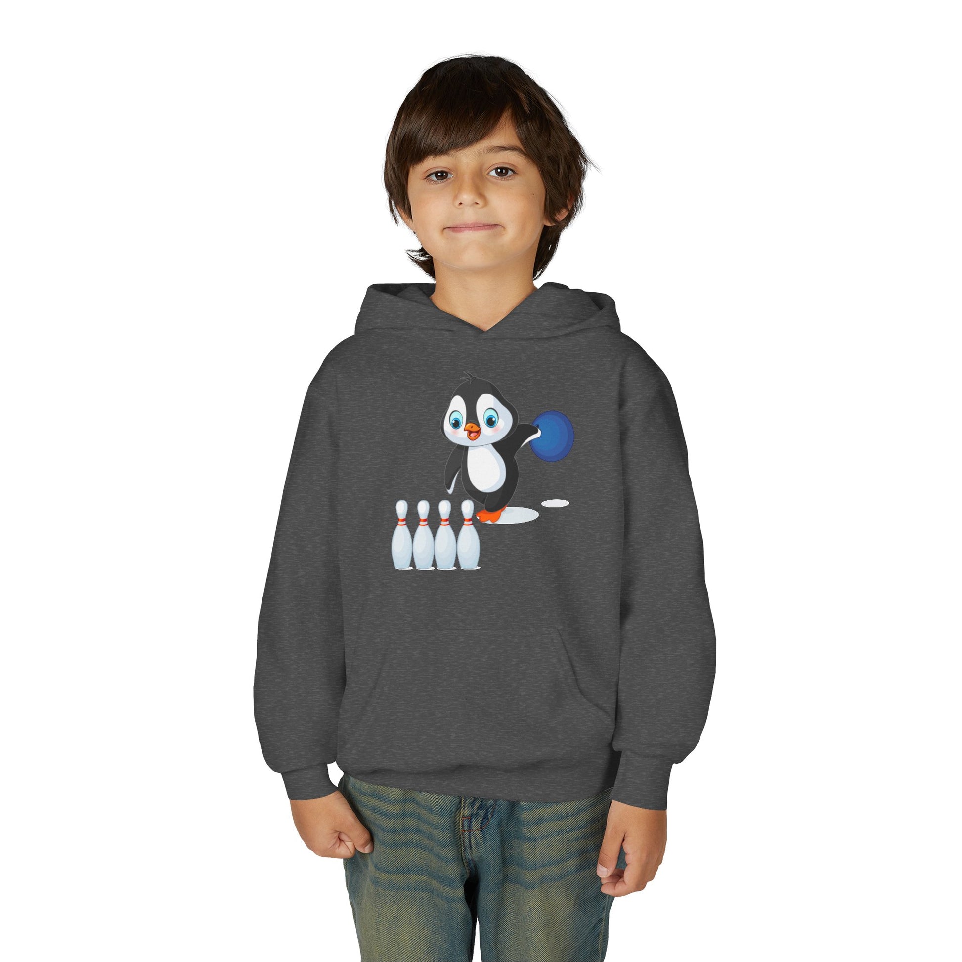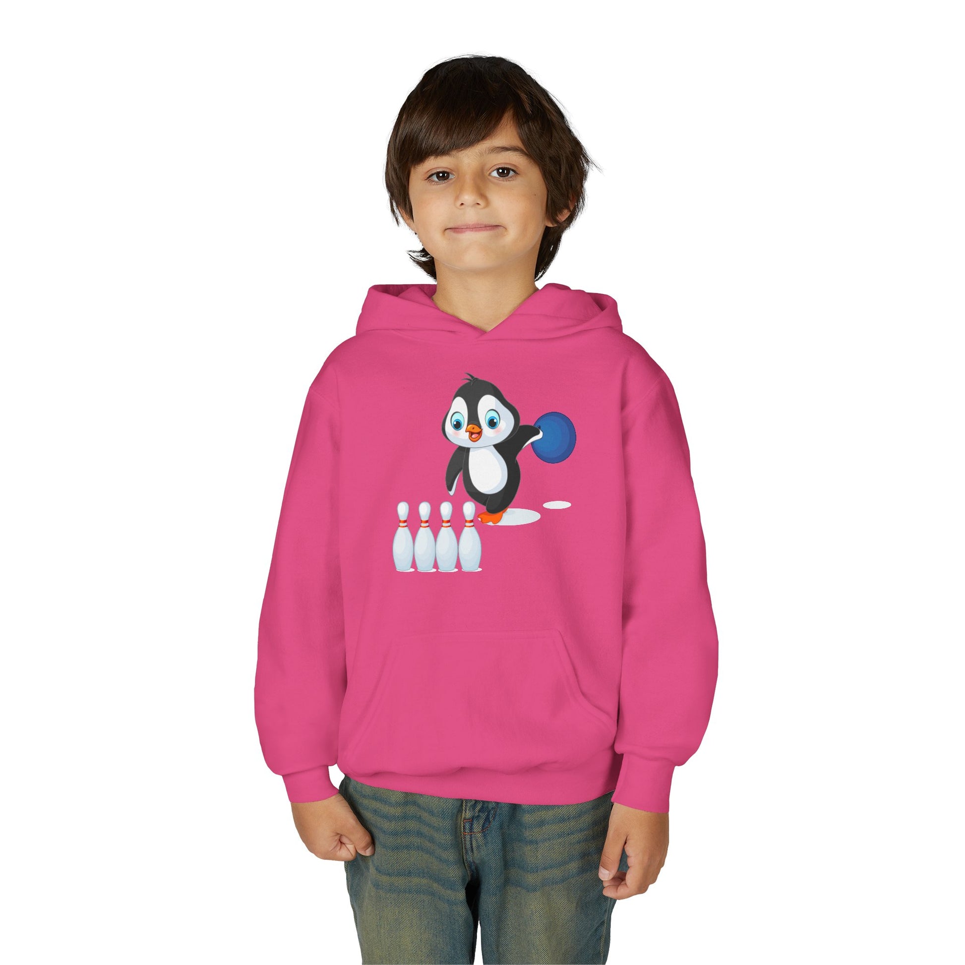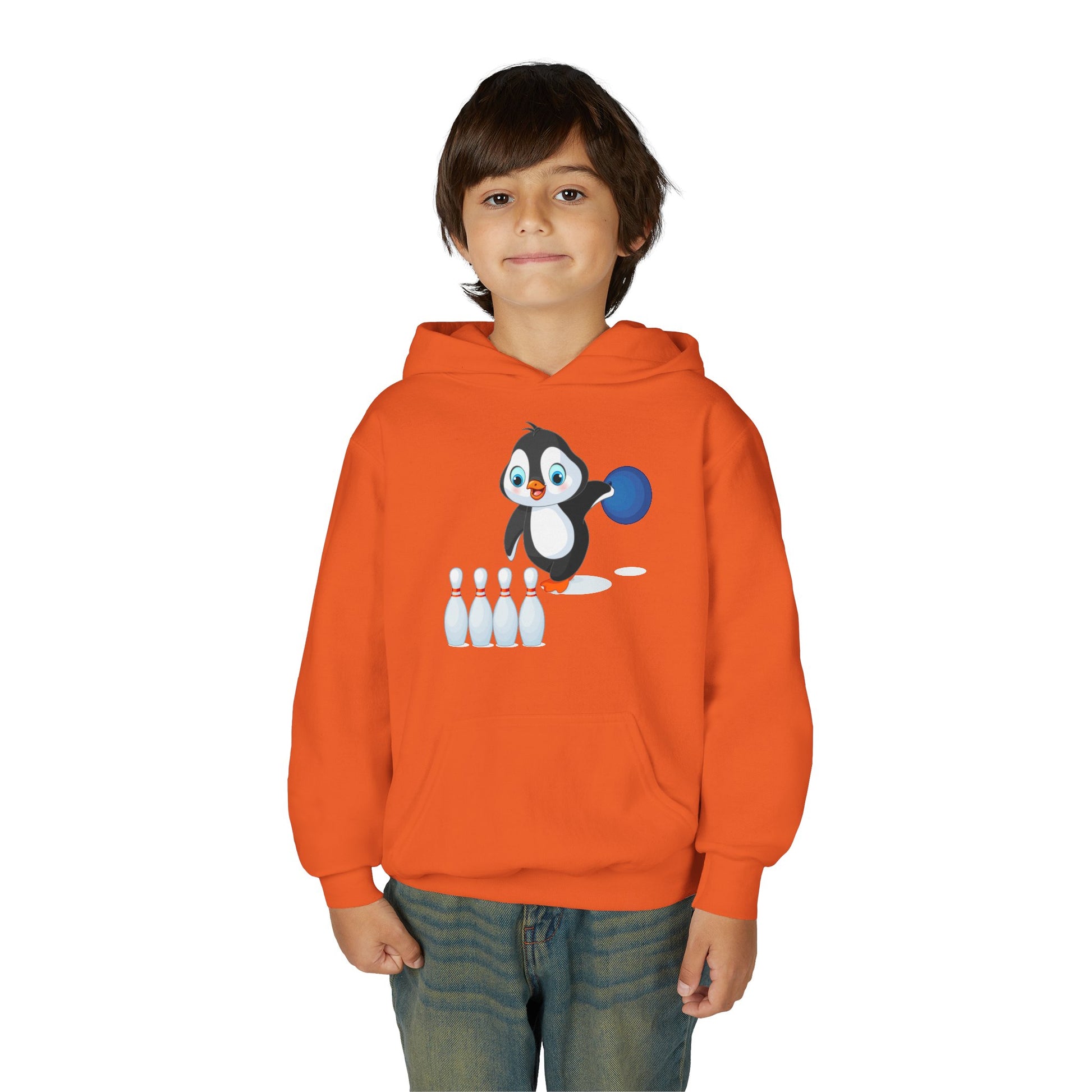 Youth Heavy Blend Hooded Sweatshirt - Adorable Penguin Bowling