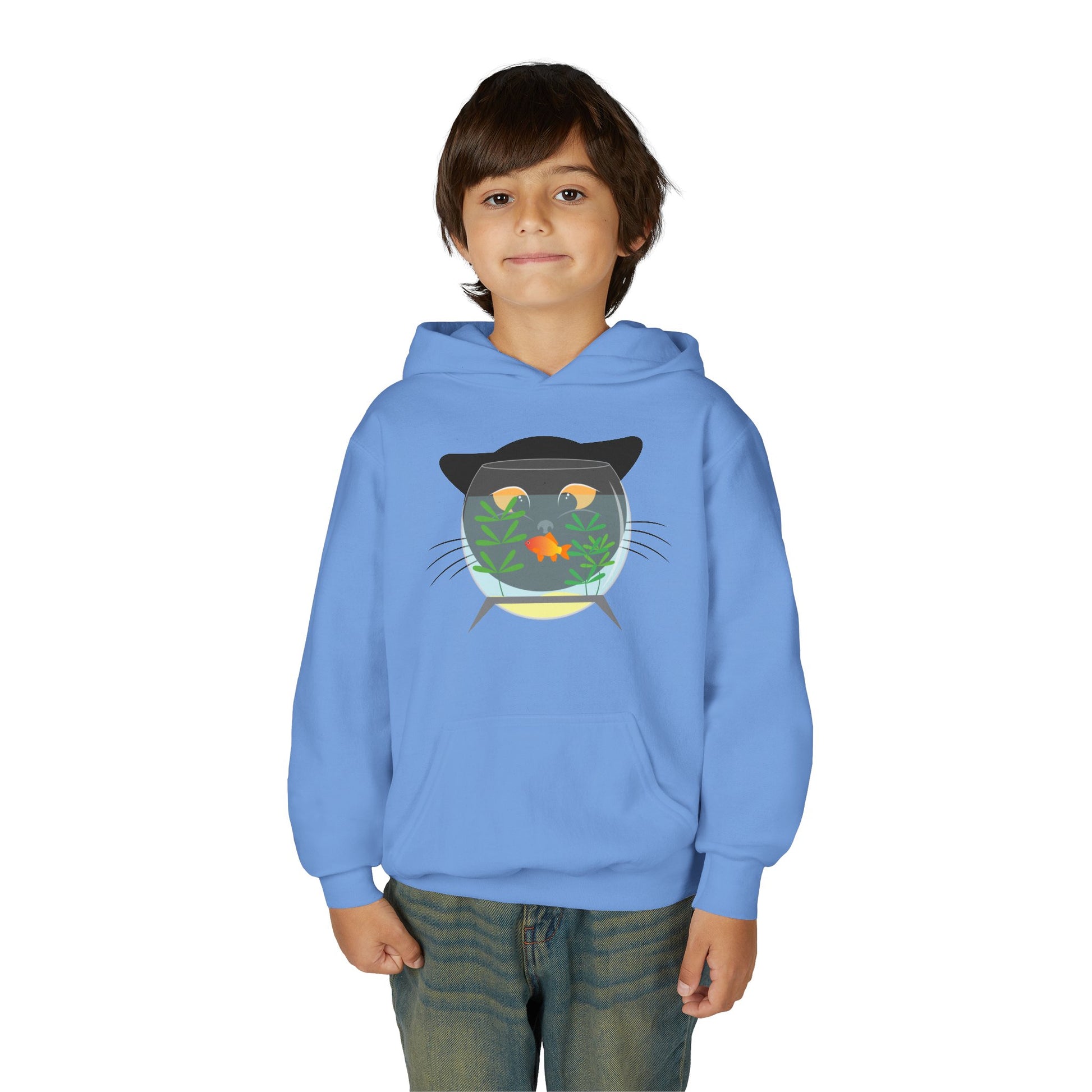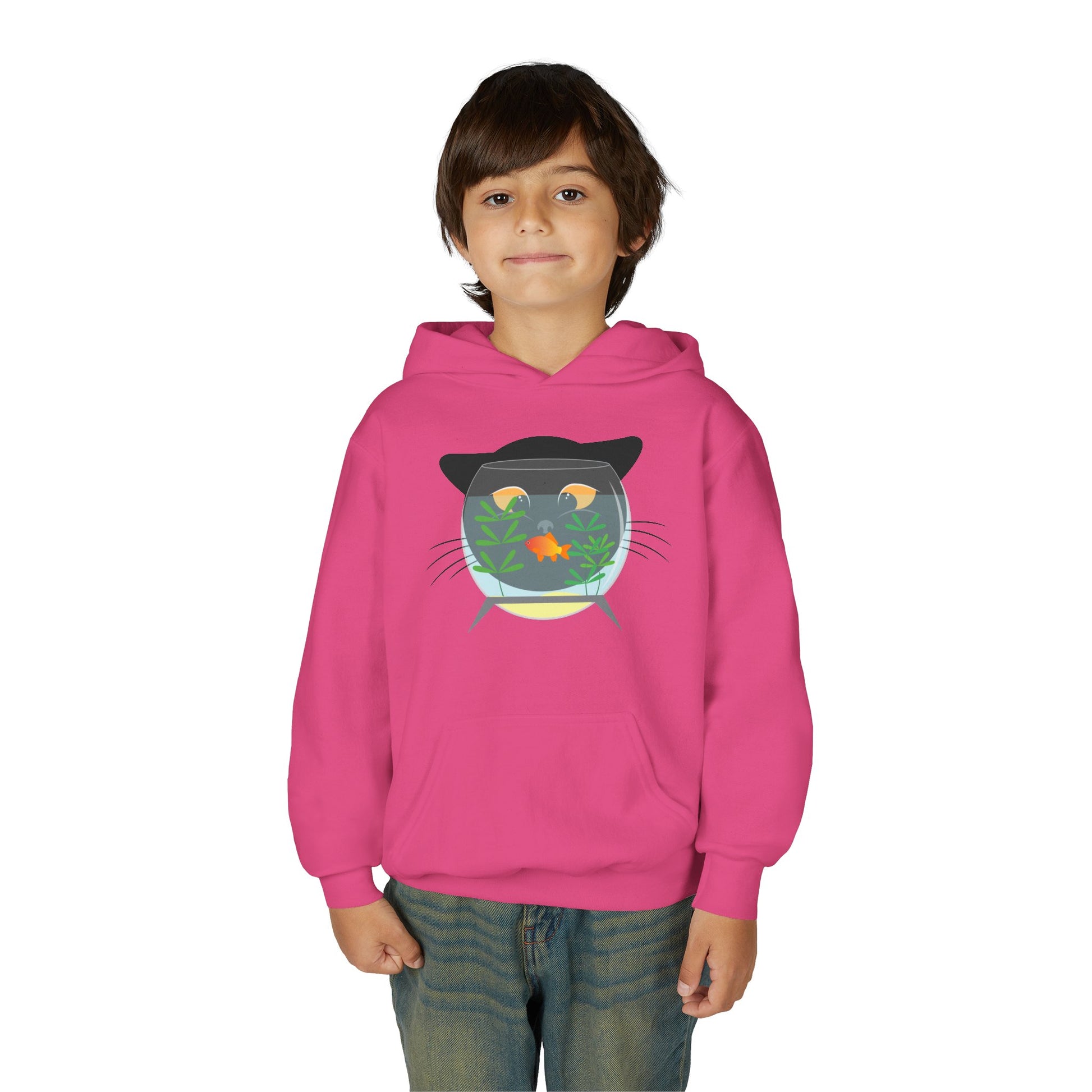 Youth Heavy Blend Hooded Sweatshirt - Black cat and gold fish