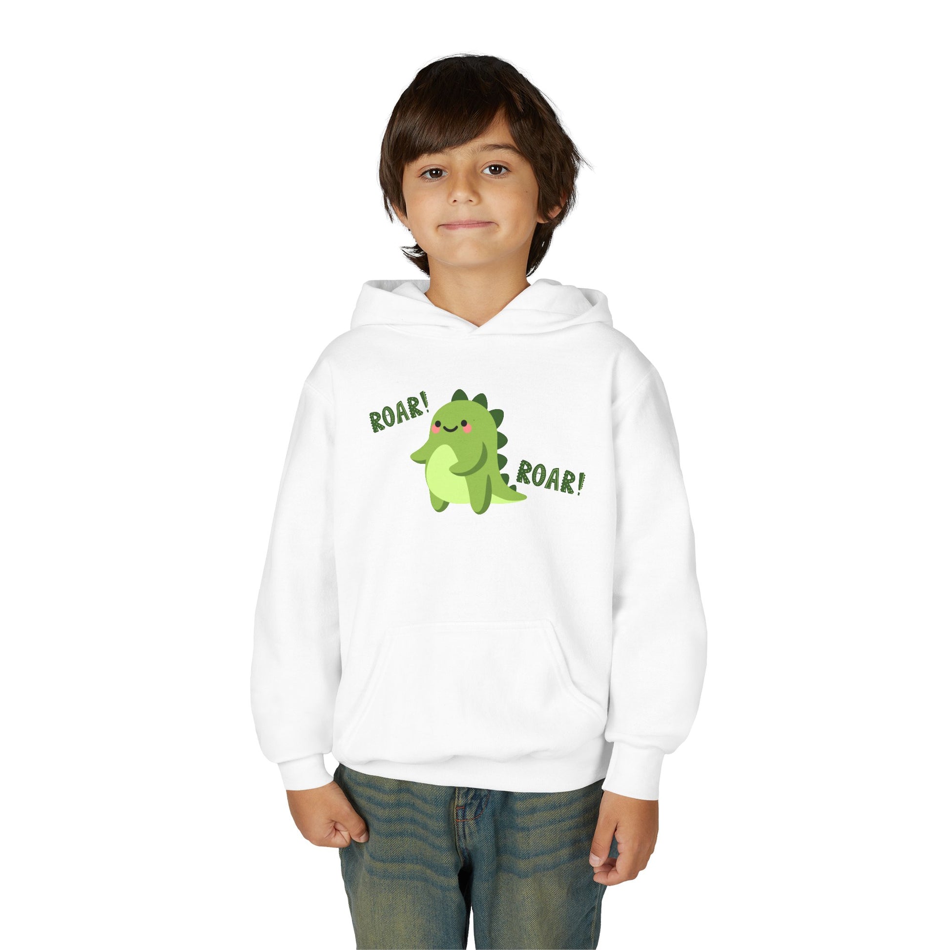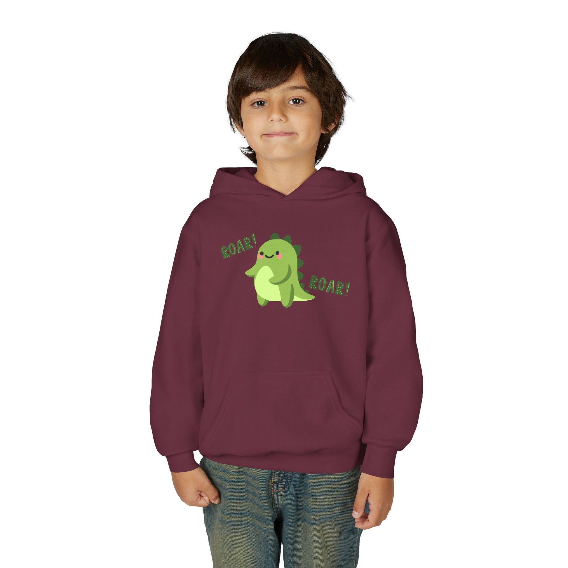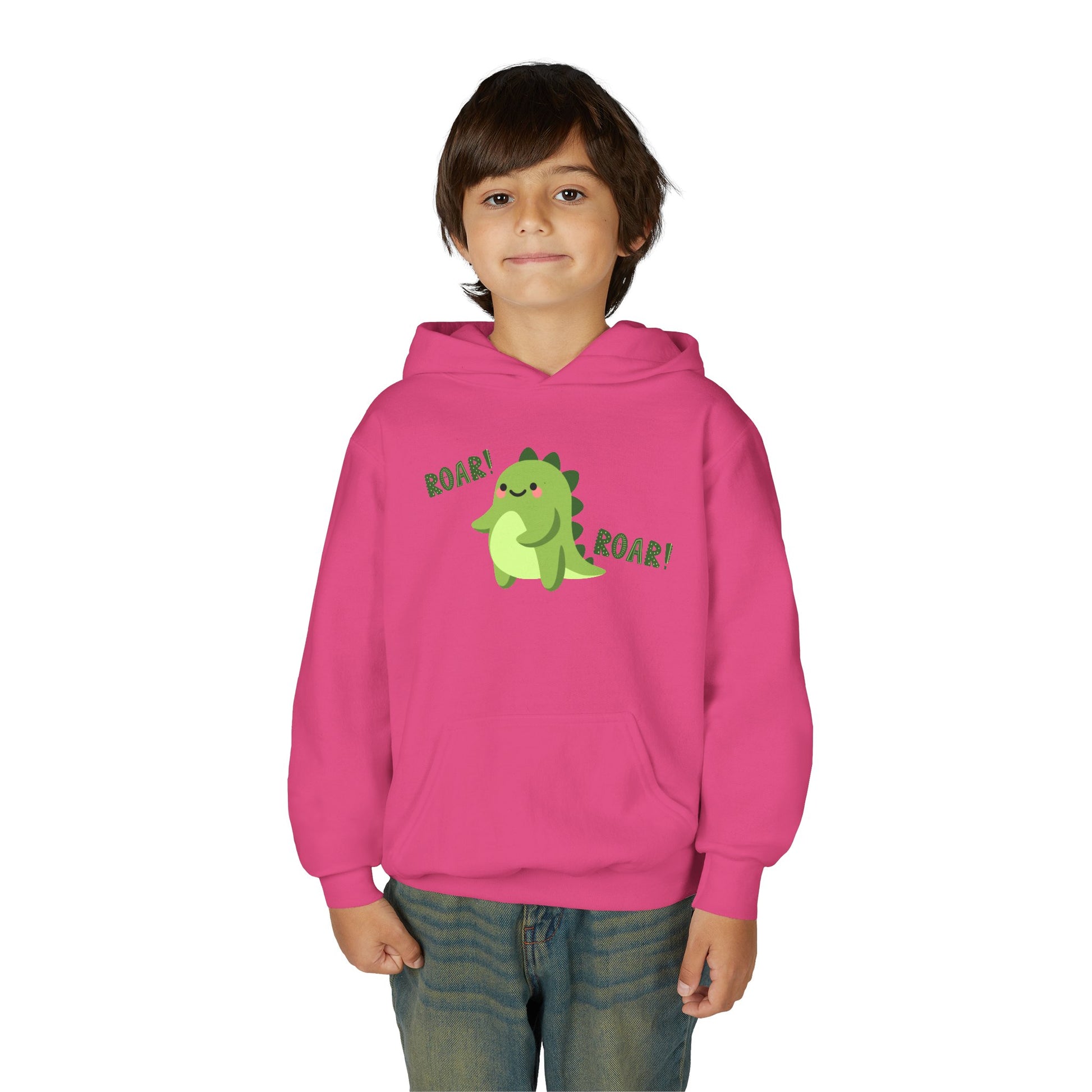 Youth Heavy Blend Hooded Sweatshirt - Cute Dinosaur Roar