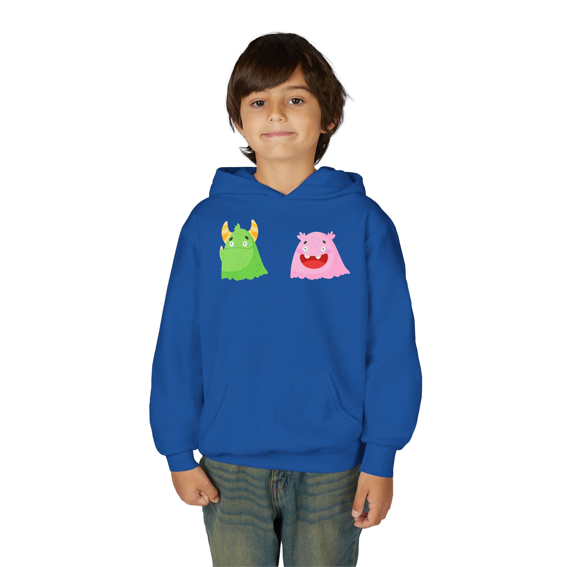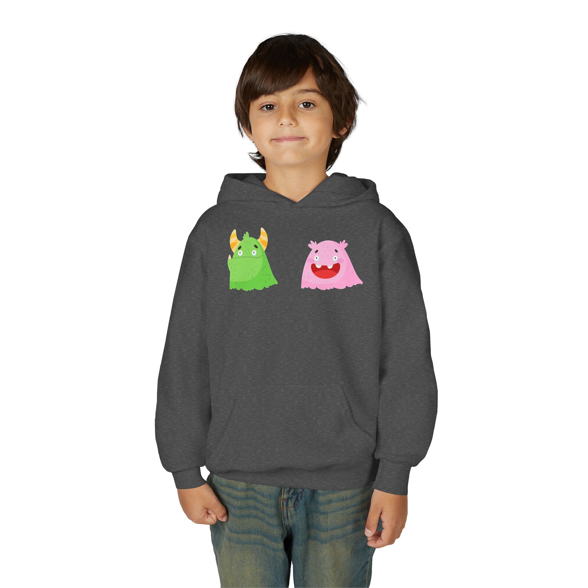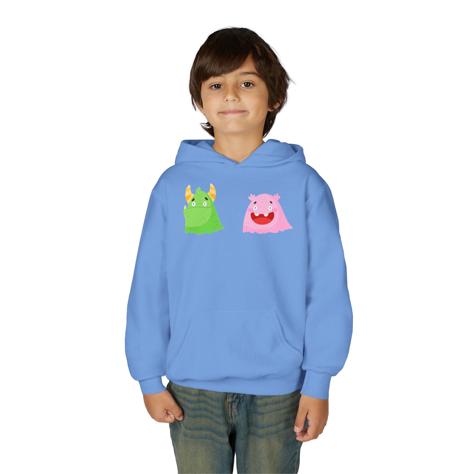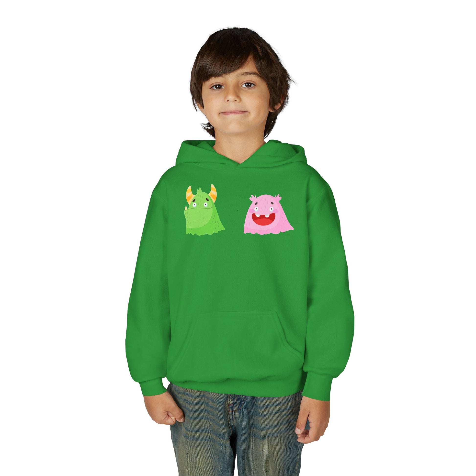 Youth Heavy Blend Hooded Sweatshirt - Green and pink monsters