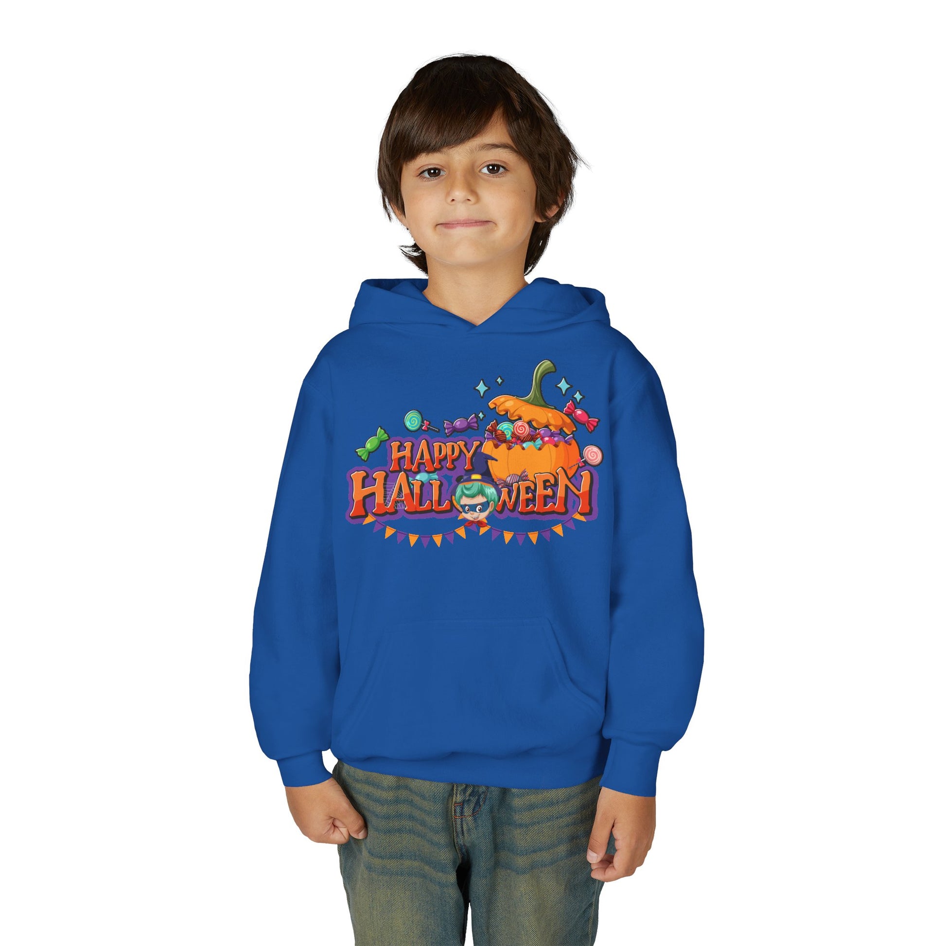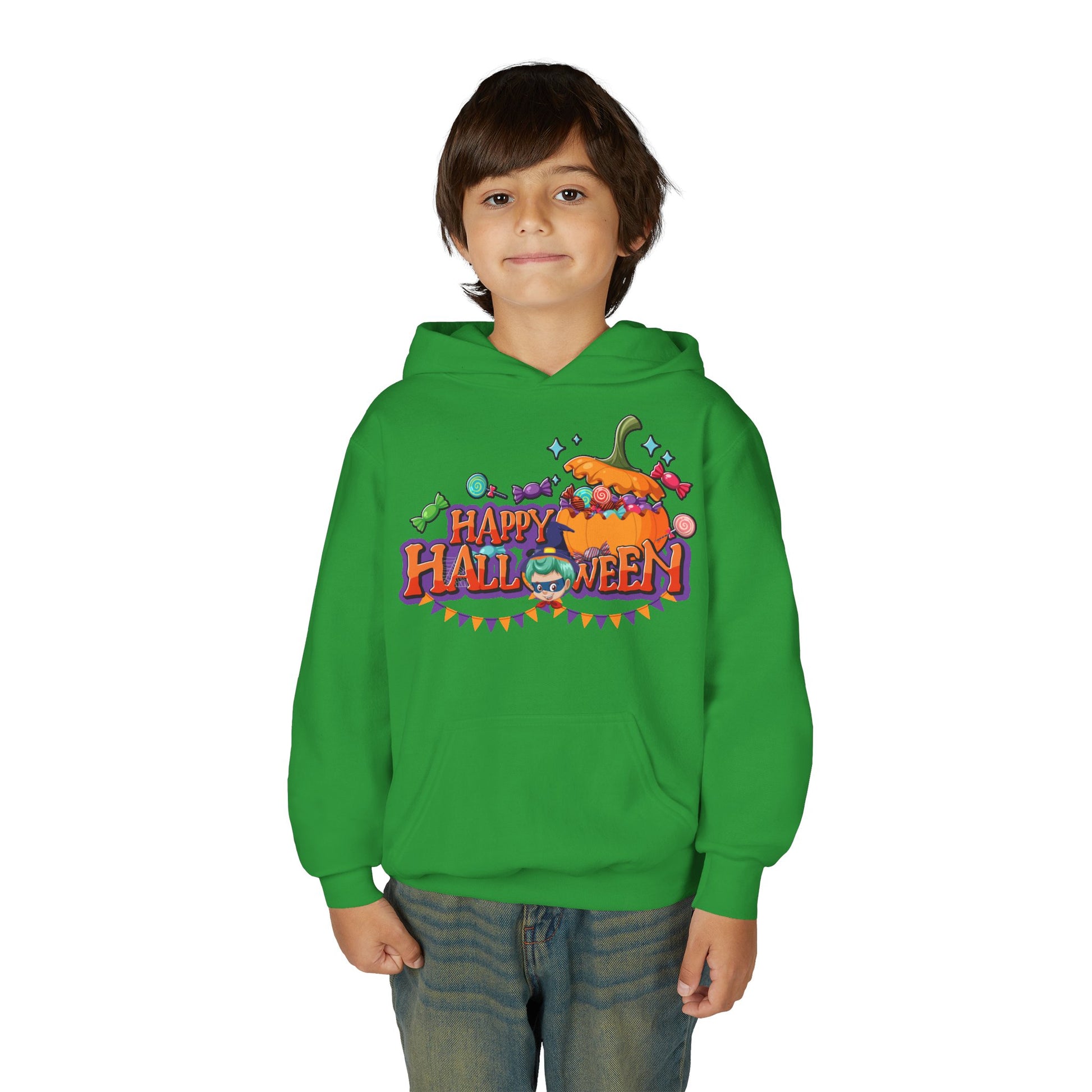 Youth Heavy Blend Hooded Sweatshirt - Happy halloween banner