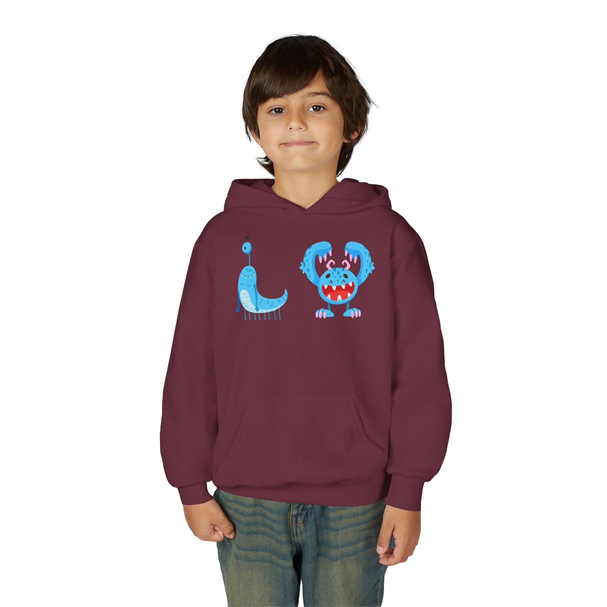 Youth Heavy Blend Hooded Sweatshirt - Happy toothy blue monsters