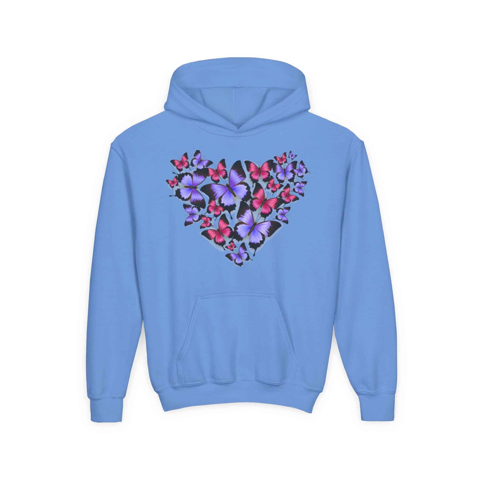 Youth Heavy Blend Hooded Sweatshirt - Heart shape monarch butterfly