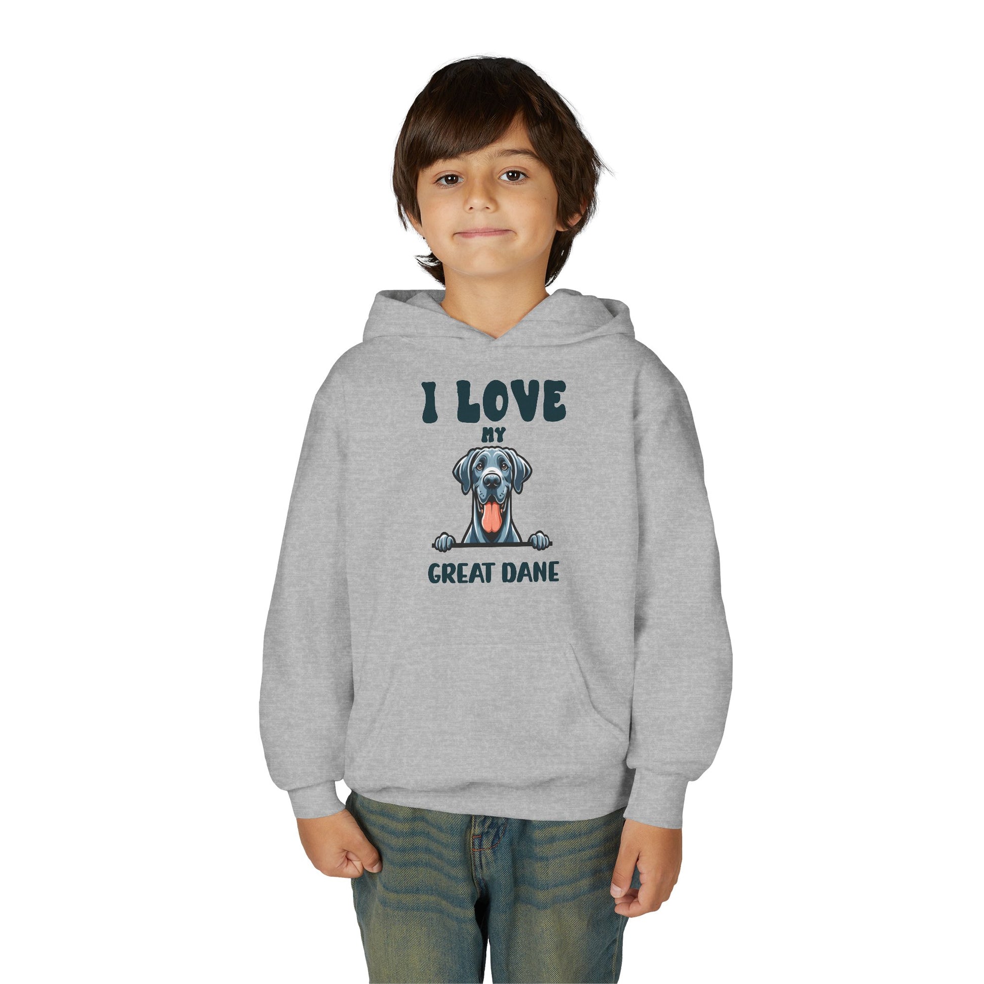 Youth Heavy Blend Hooded Sweatshirt - I love my Great Dane