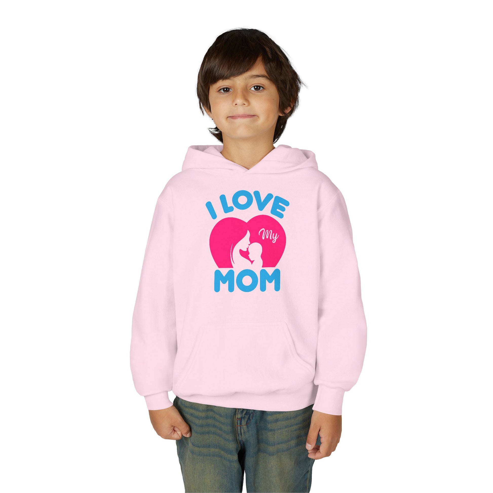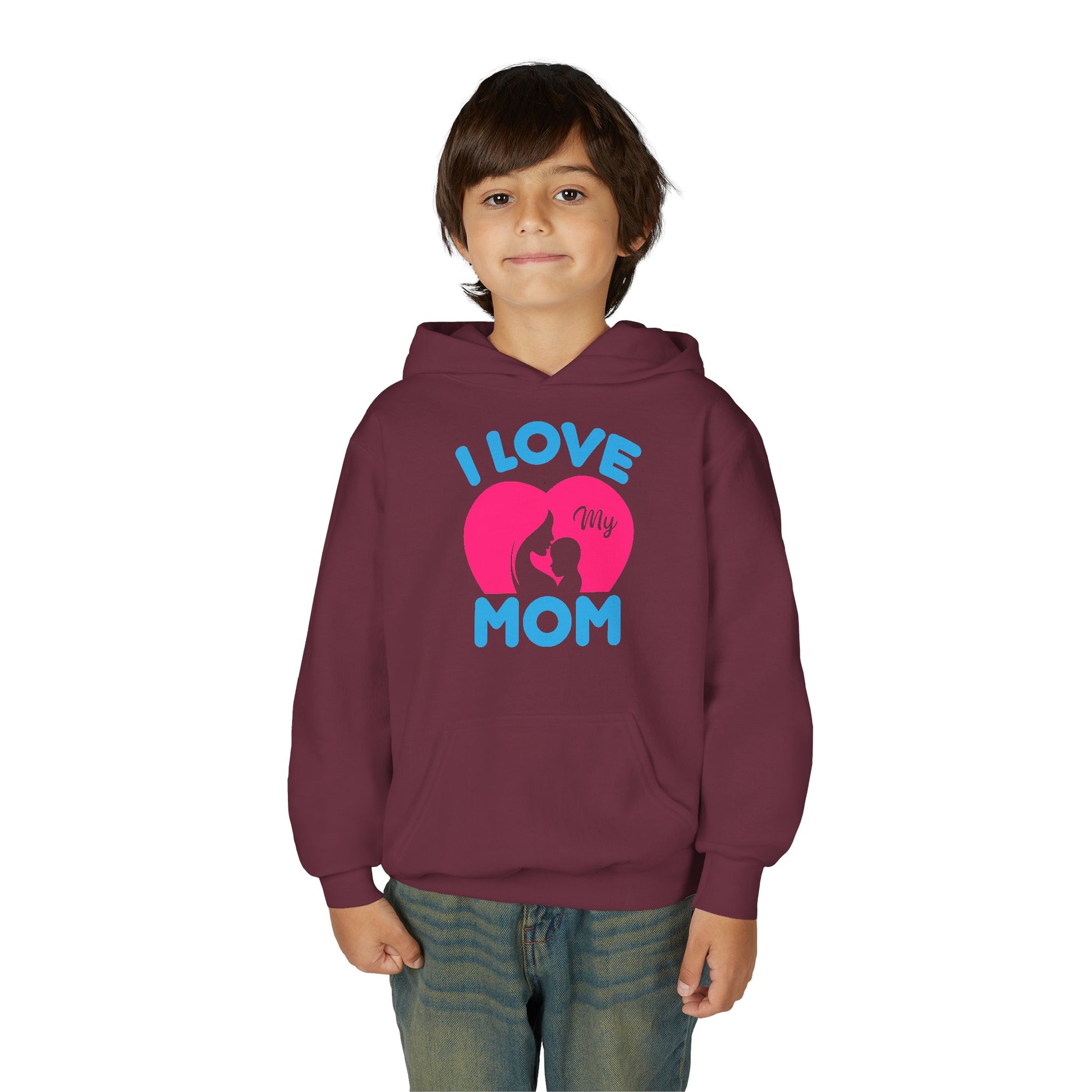 Celebrate the love between children and their mothers with this charming Youth Heavy Blend Hooded Sweatshirt. Perfect for cozy days at home, school, or outings, this sweatshirt wraps your child in warmth and comfort. The vibrant graphics exude joy and affection, making it a delightful gift for Mother's Day, birthdays, or just to show appreciation any day of the year. Designed for active kids, this hoodie is ideal for those who cherish memorable moments with their moms, whether it’s snuggling on the couch or outdoor adventures. Bring a smile to your little one's face with this heartfelt reminder of love!