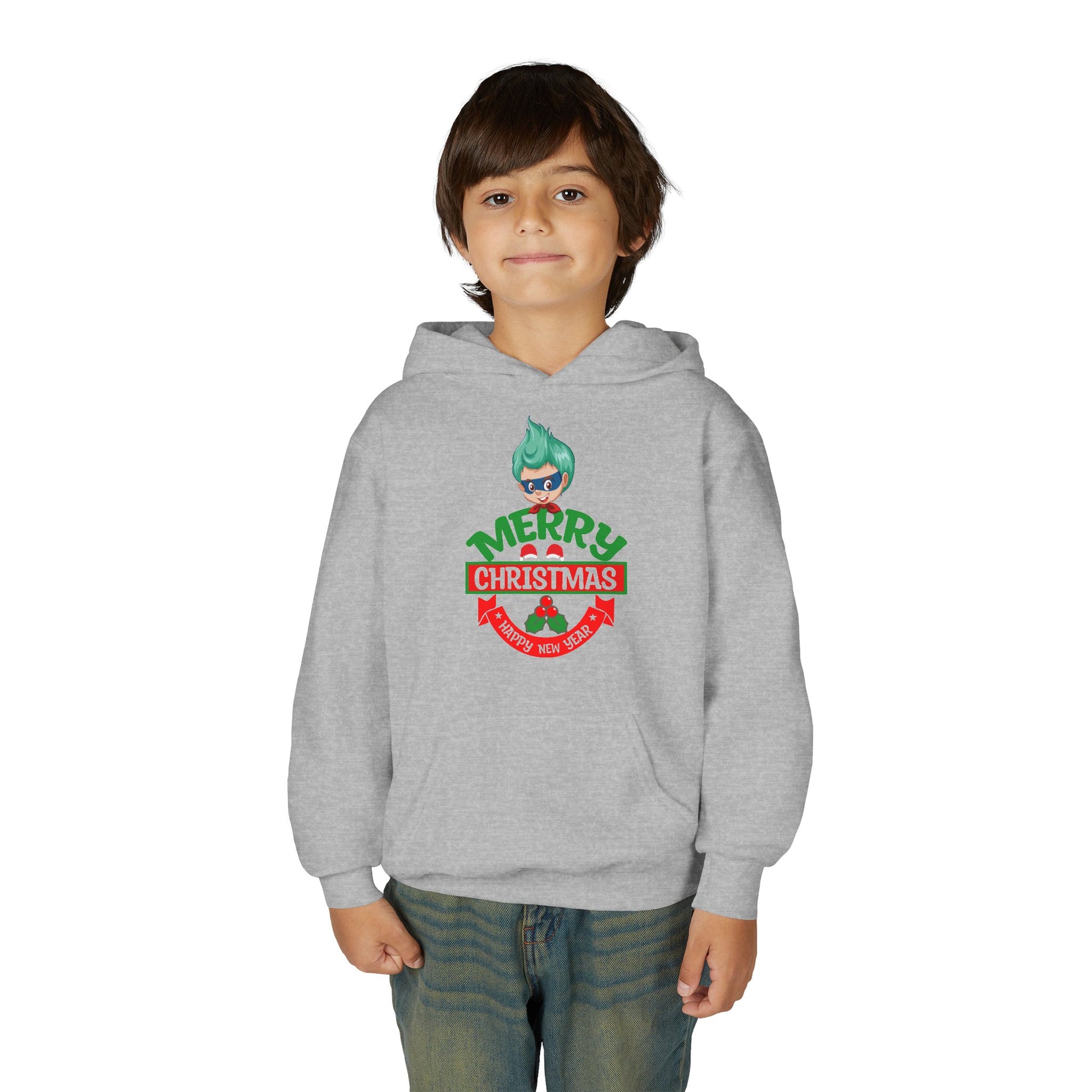 Youth Heavy Blend Hooded Sweatshirt - Merry chridtmas from super kiddo