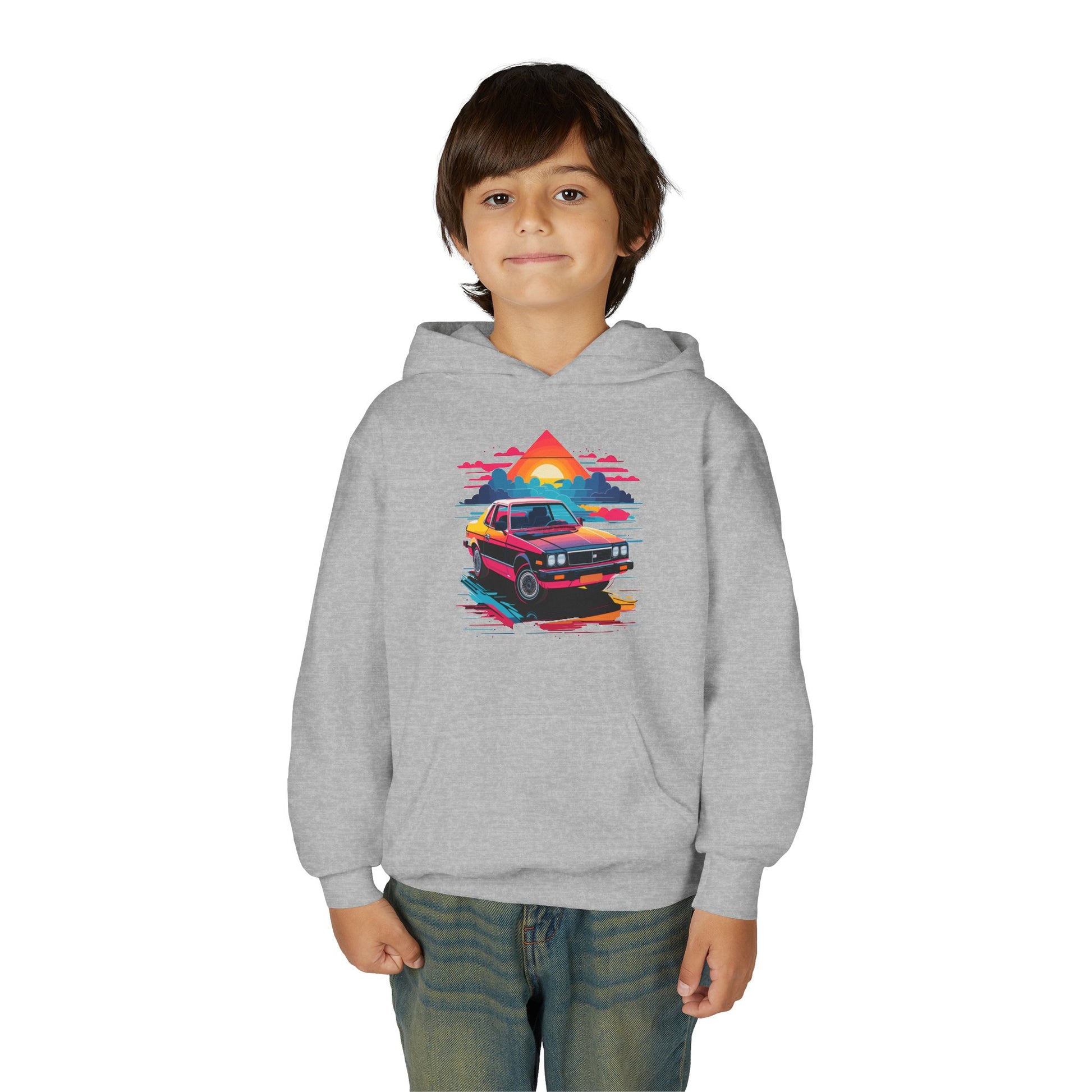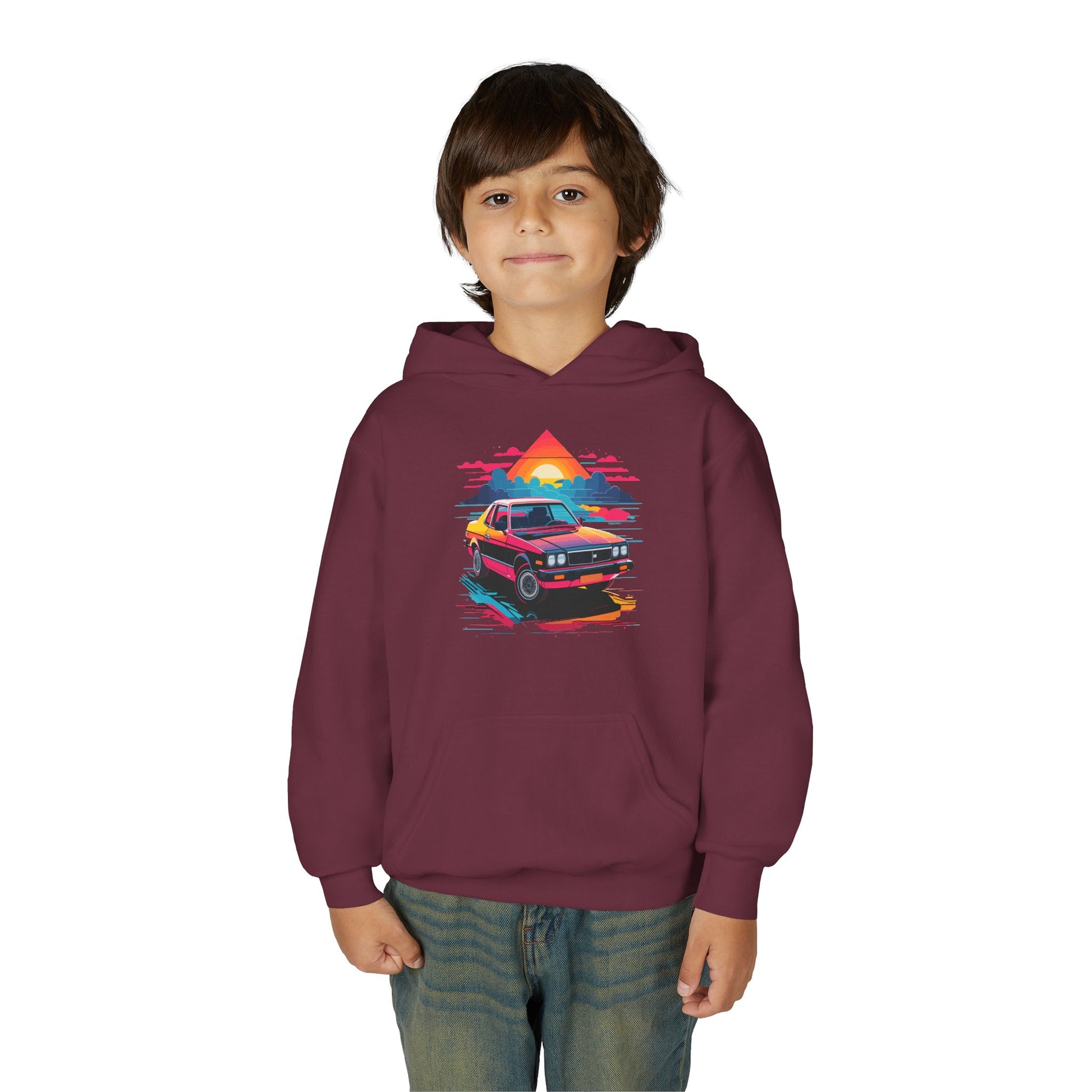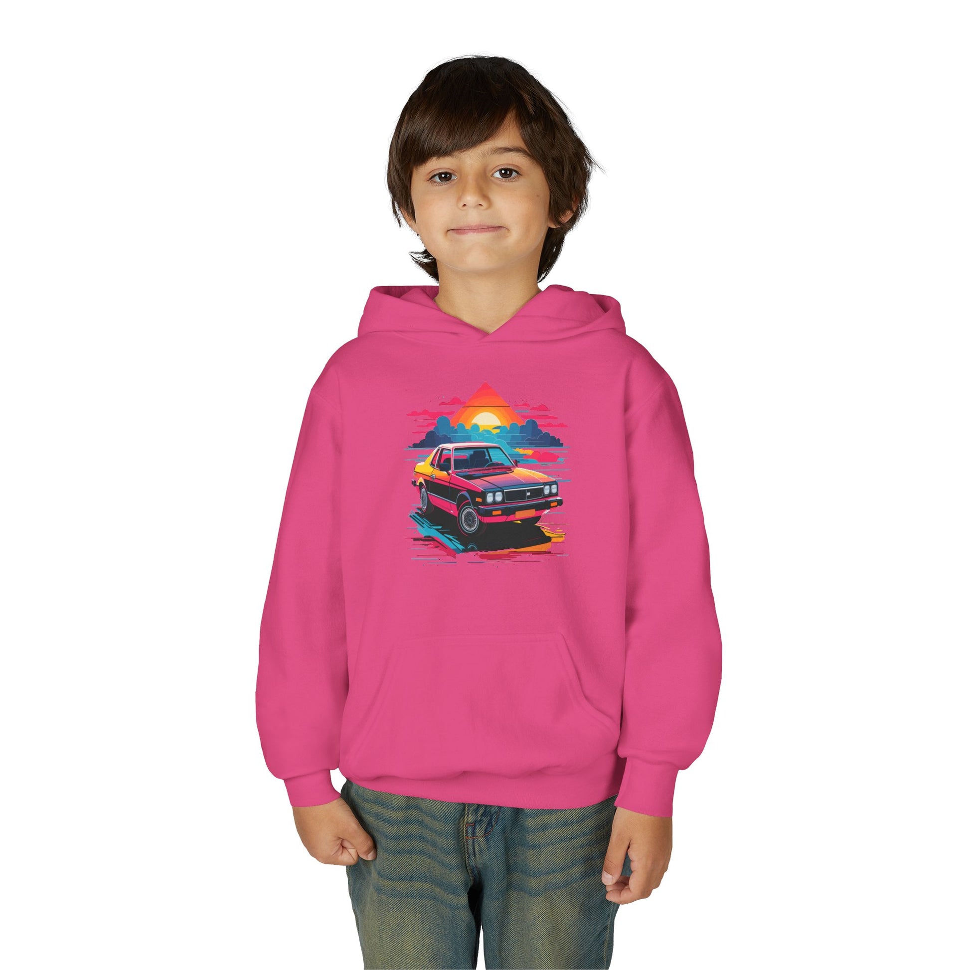 Introducing a cozy Youth Hooded Sweatshirt that captures a vibrant, retro vibe with its striking design. Perfect for kids who love to express their individuality, this hoodie adds a pop of color to any outfit while providing comfort and warmth. Ideal for casual outings, school events, or cozy days at home, it’s versatile enough for various occasions, from birthday celebrations to family gatherings. This sweatshirt is a perfect gift for young car enthusiasts, or those who enjoy 80s-inspired style. It’s an excellent choice for holidays and events like back-to-school season and family vacations, ensuring your child stands out in style!
