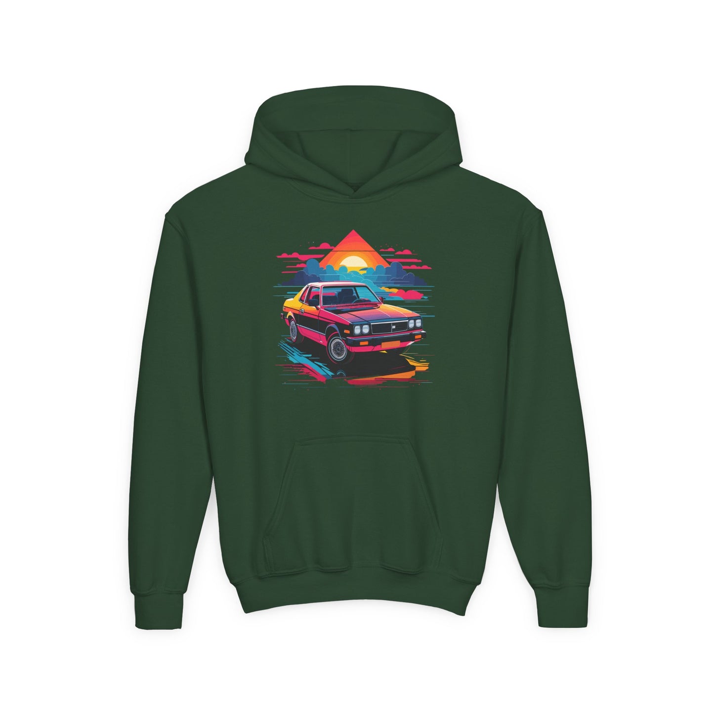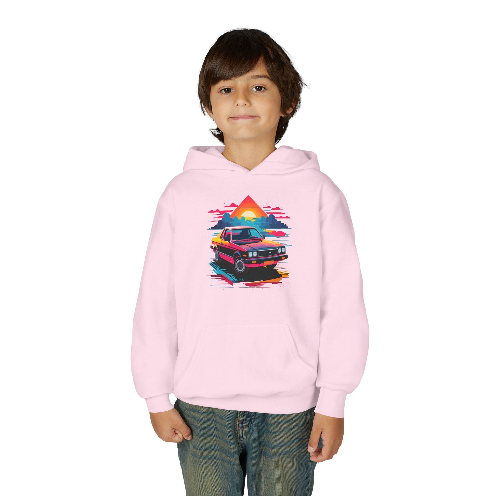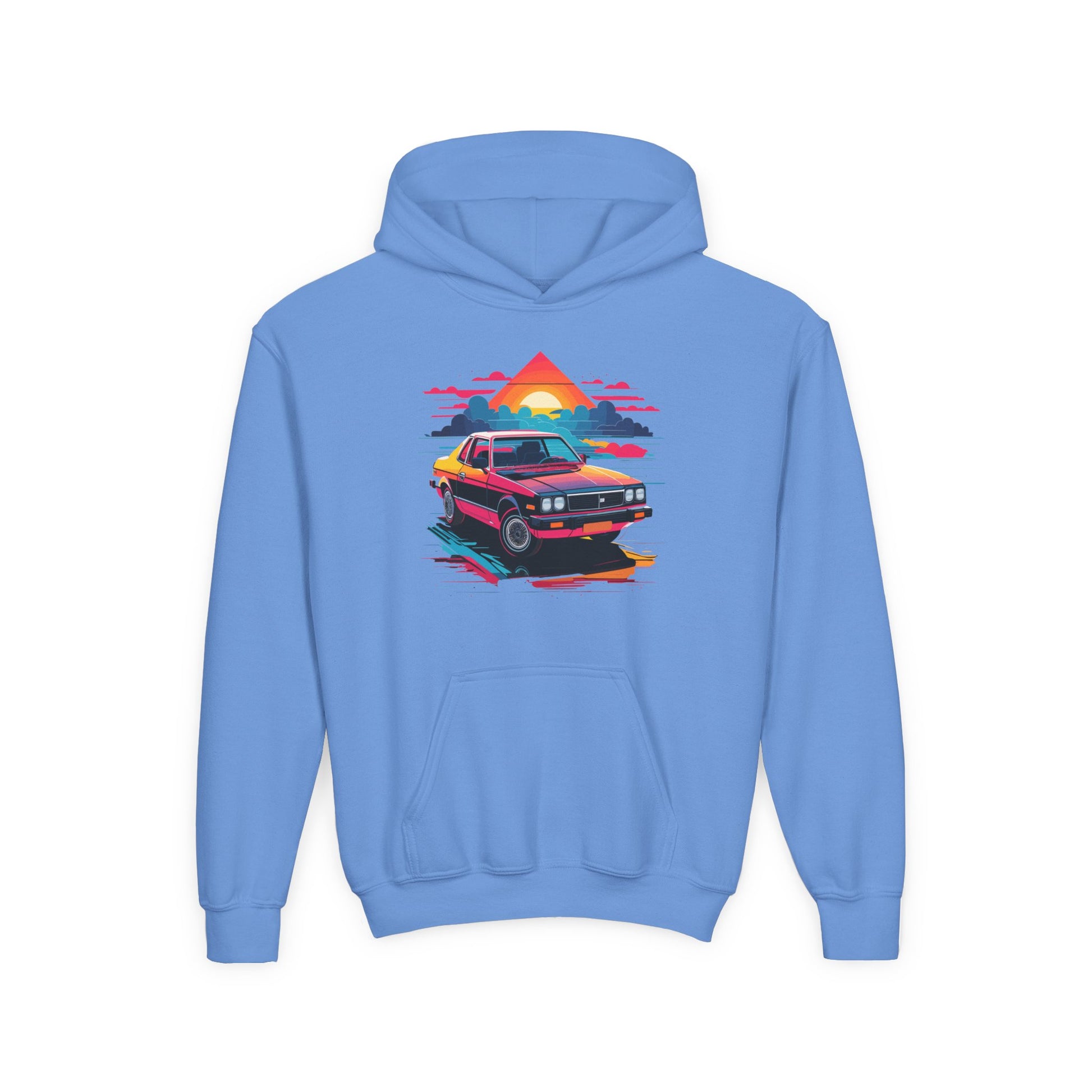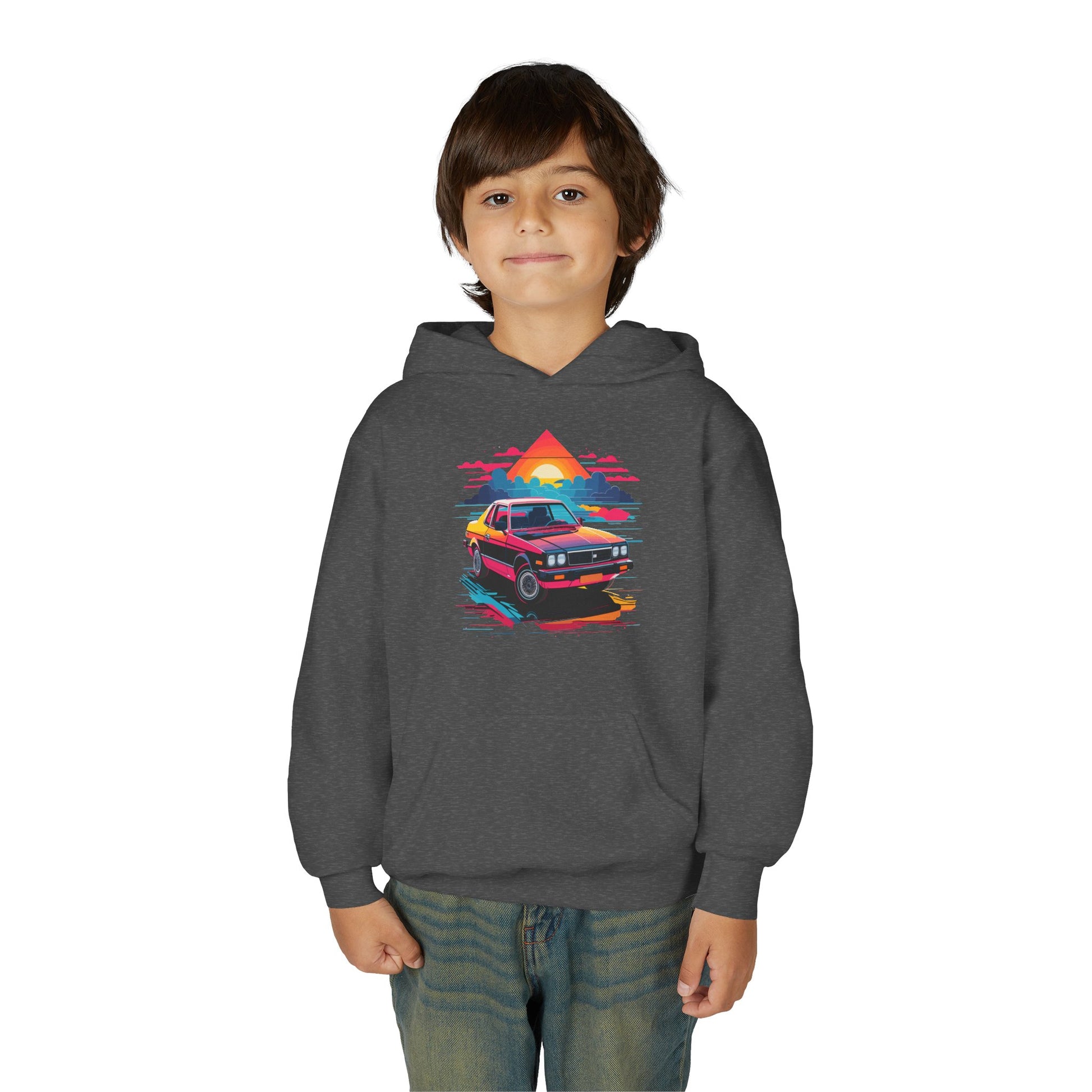 Introducing a cozy Youth Hooded Sweatshirt that captures a vibrant, retro vibe with its striking design. Perfect for kids who love to express their individuality, this hoodie adds a pop of color to any outfit while providing comfort and warmth. Ideal for casual outings, school events, or cozy days at home, it’s versatile enough for various occasions, from birthday celebrations to family gatherings. This sweatshirt is a perfect gift for young car enthusiasts, or those who enjoy 80s-inspired style. It’s an excellent choice for holidays and events like back-to-school season and family vacations, ensuring your child stands out in style!