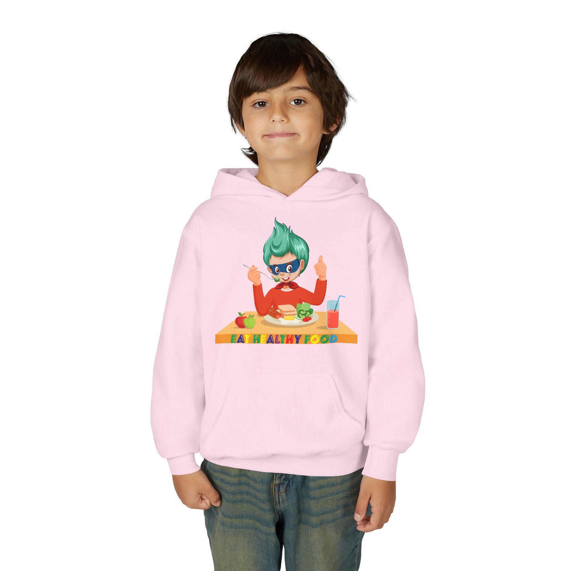 Youth Heavy Blend Hooded Sweatshirt - Super kiddo eating healthy breafast