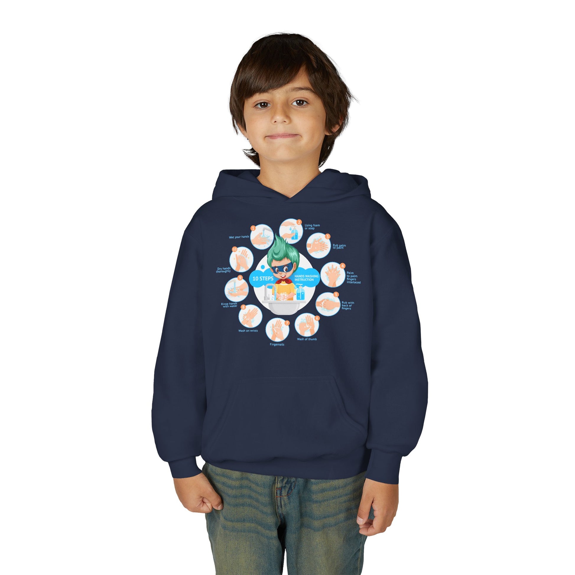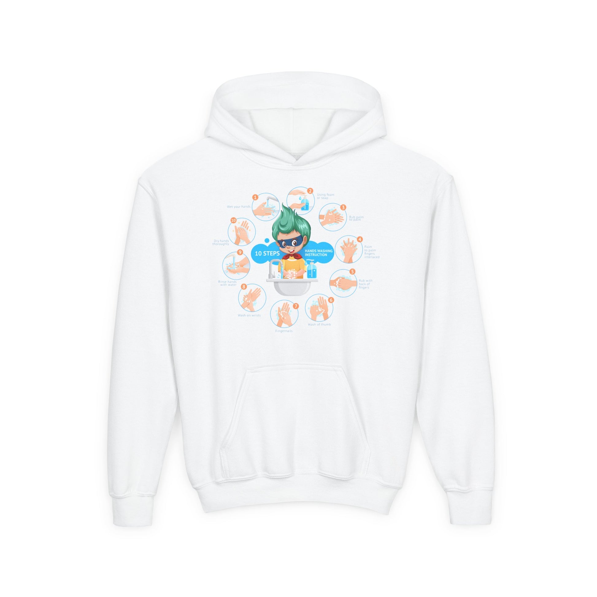 Youth Heavy Blend Hooded Sweatshirt - Super kiddo hand washing steps