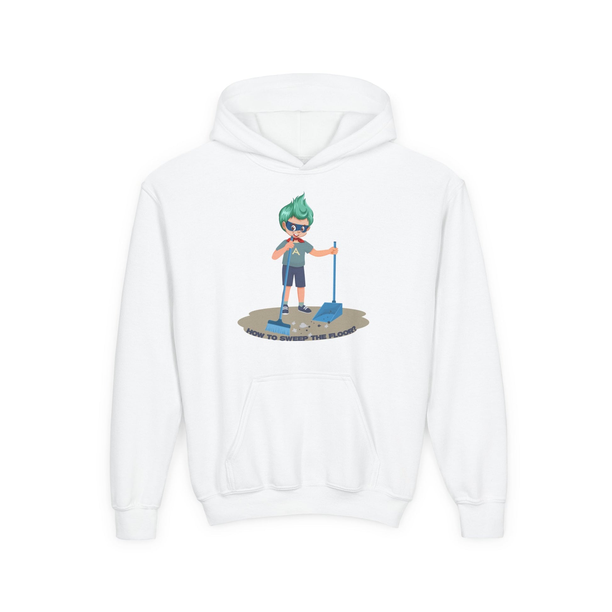 Youth Heavy Blend Hooded Sweatshirt - Super kiddo sweeping floor