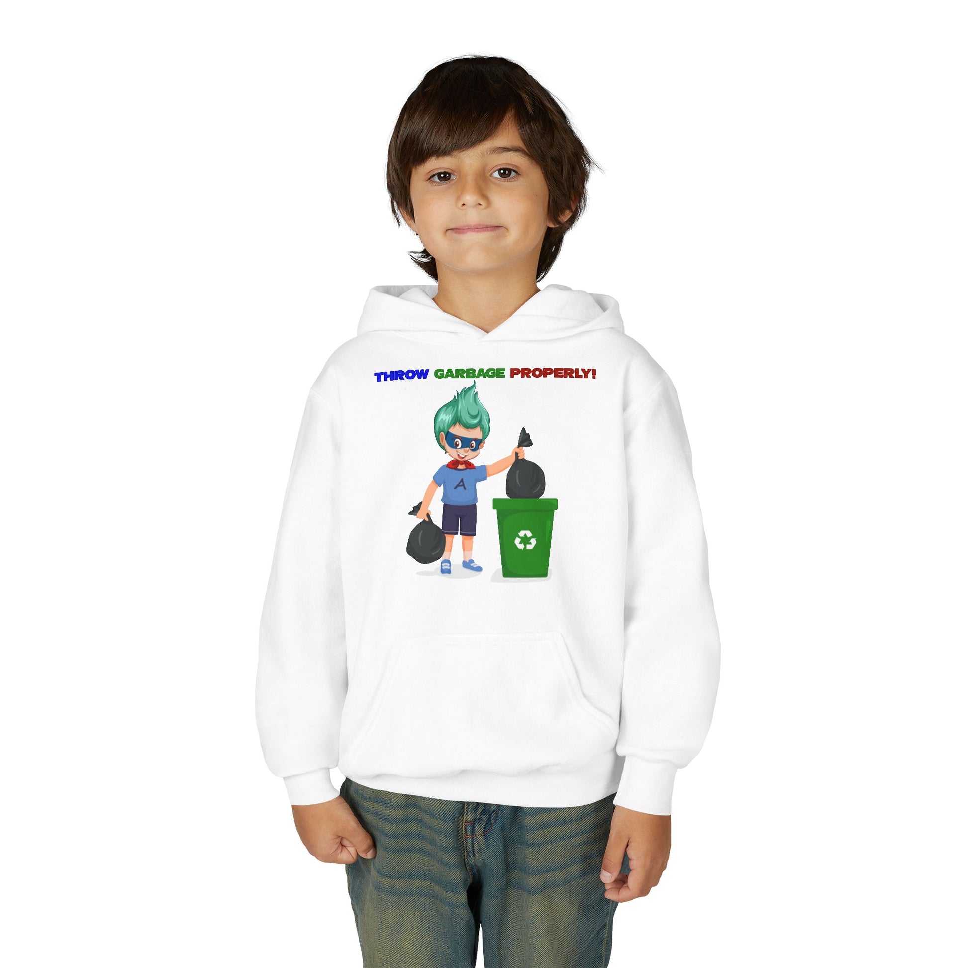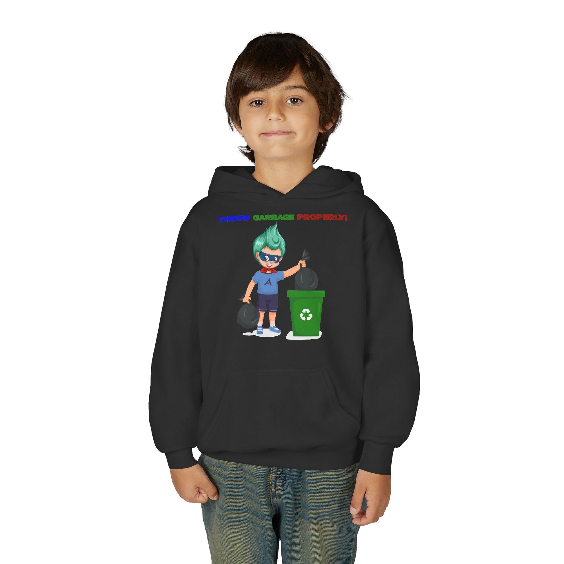 Youth Heavy Blend Hooded Sweatshirt - Super kiddo taking trash out