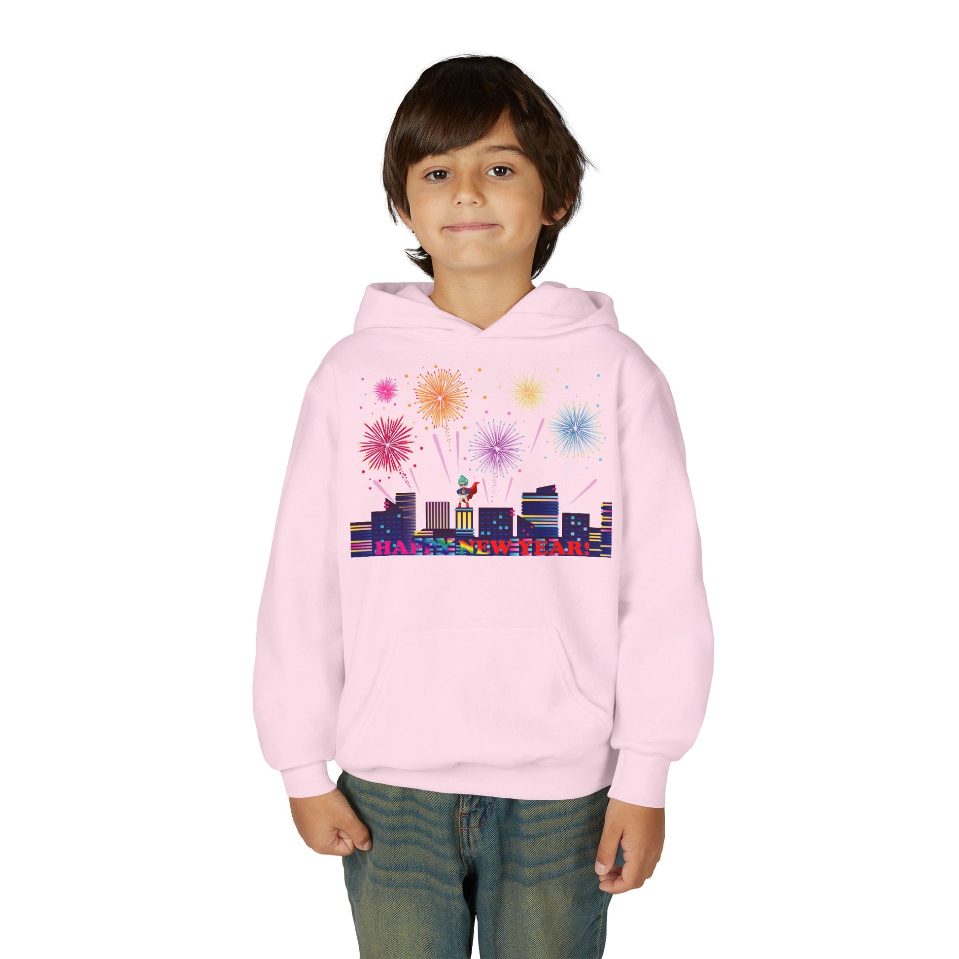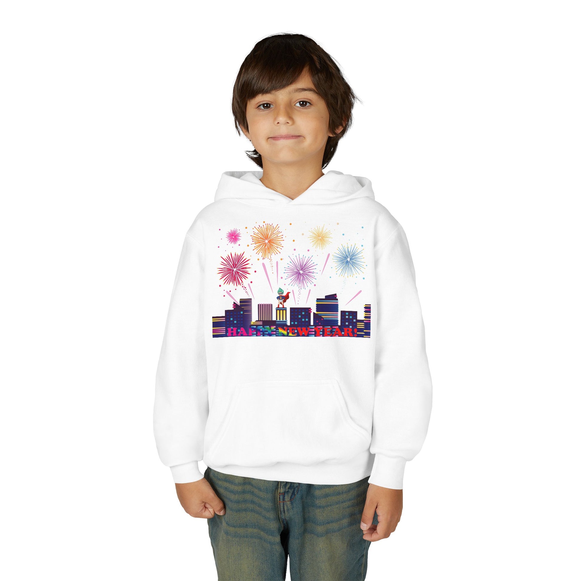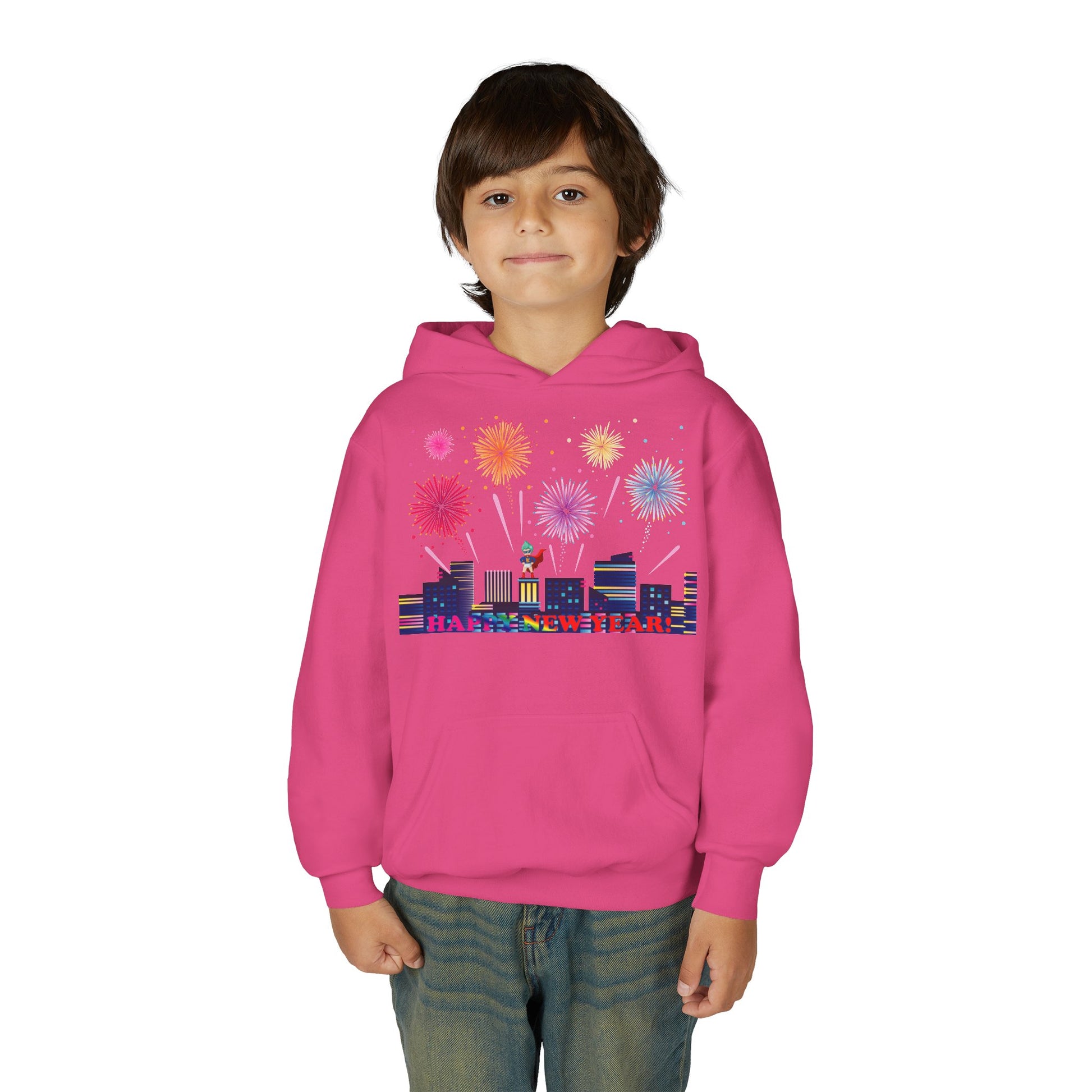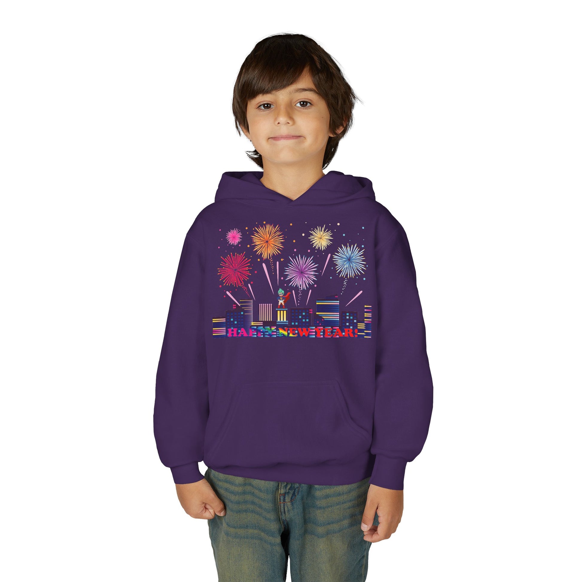 Youth Heavy Blend Hooded Sweatshirt - Super kiddo with fireworks with text