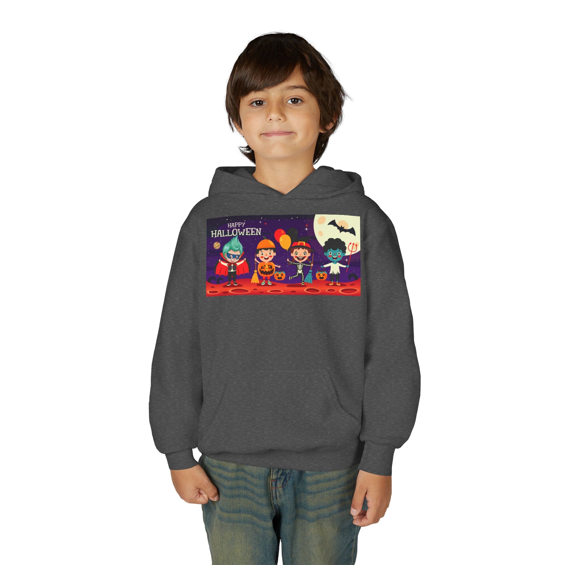 Youth Heavy Blend Hooded Sweatshirt - Super kiddo with friends on holloween