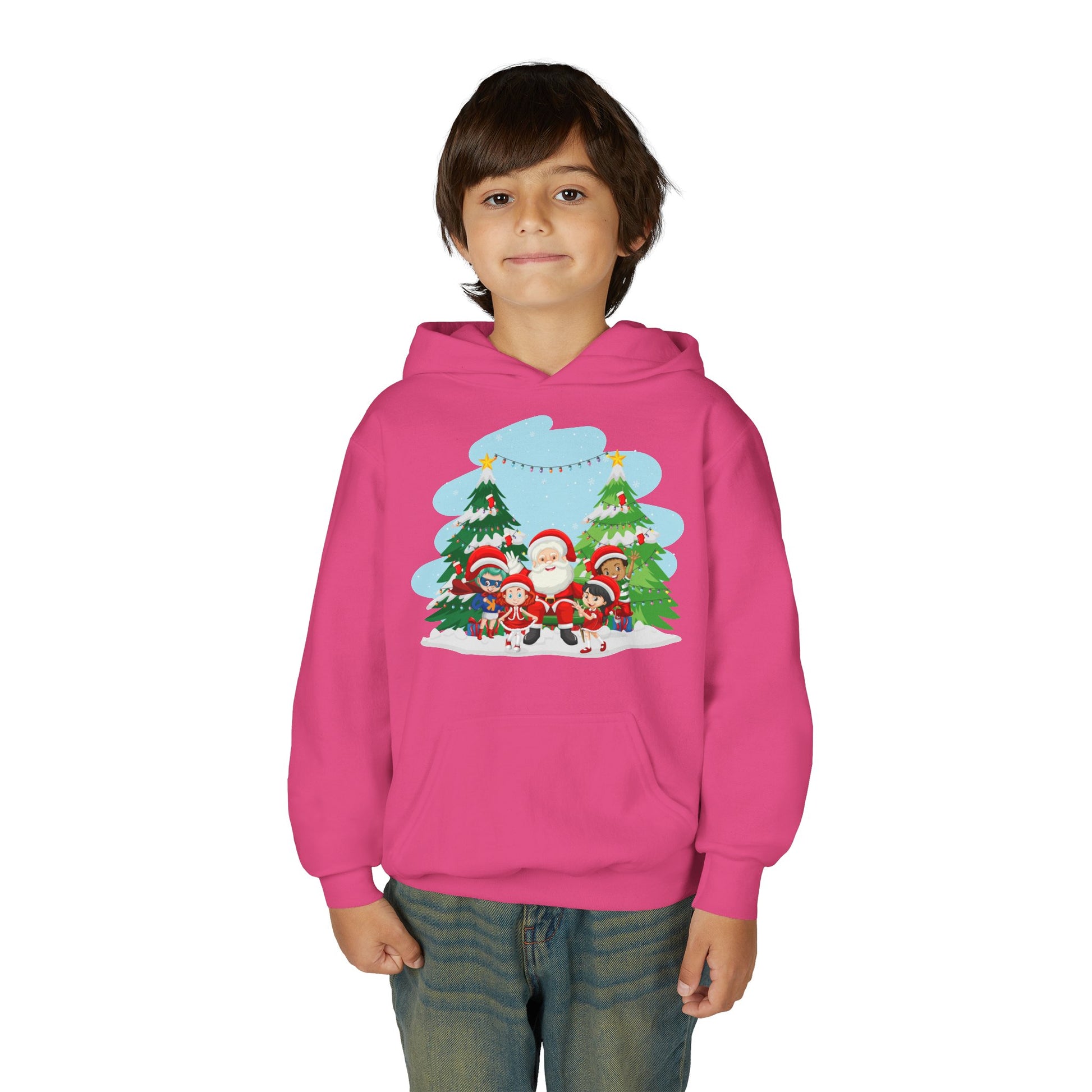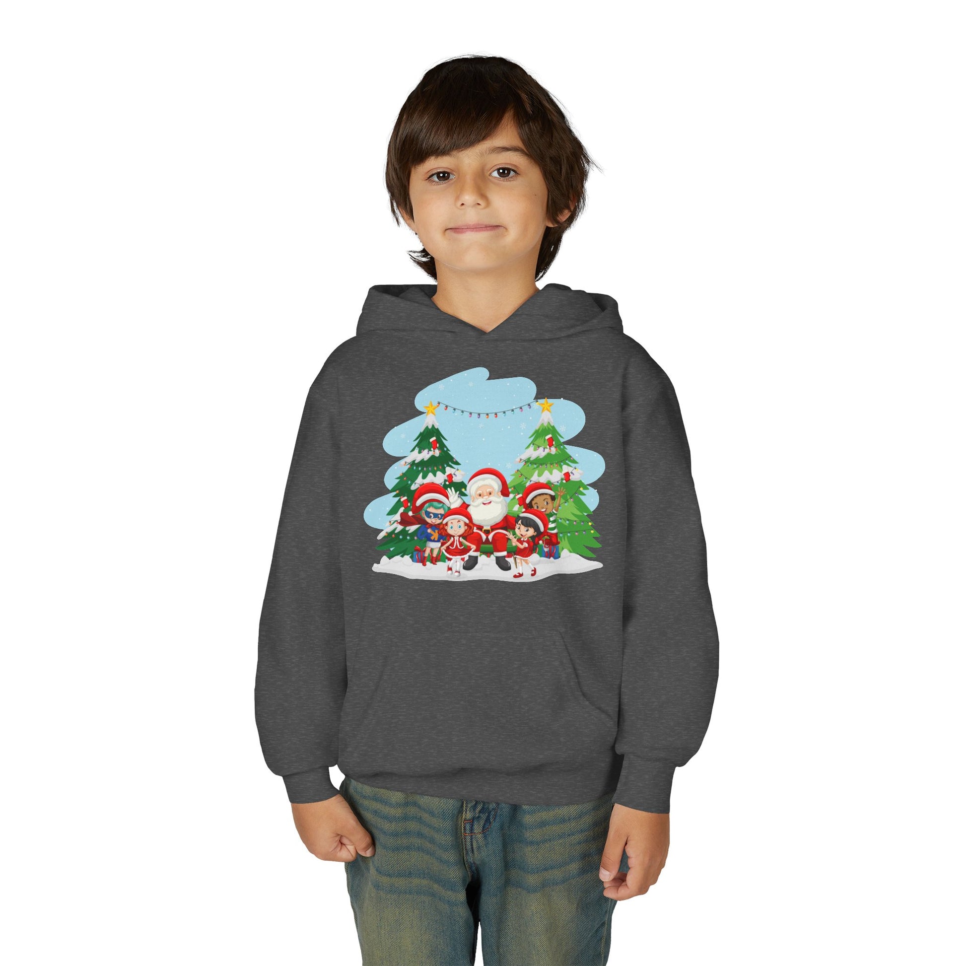 Youth Heavy Blend Hooded Sweatshirt - Super kiddo with santa claus