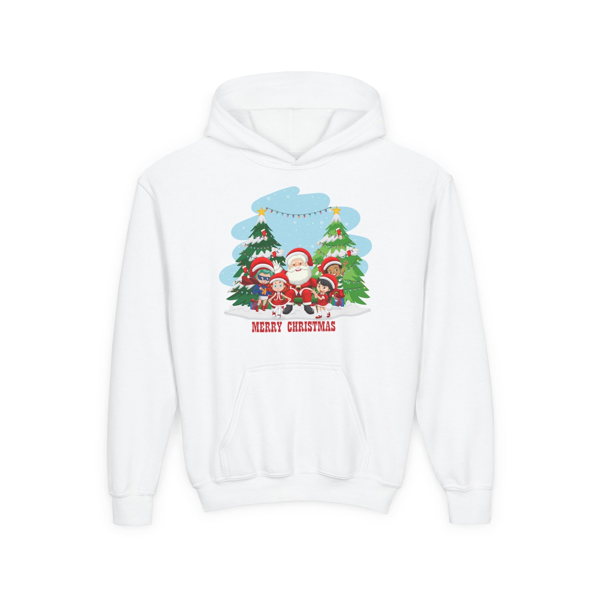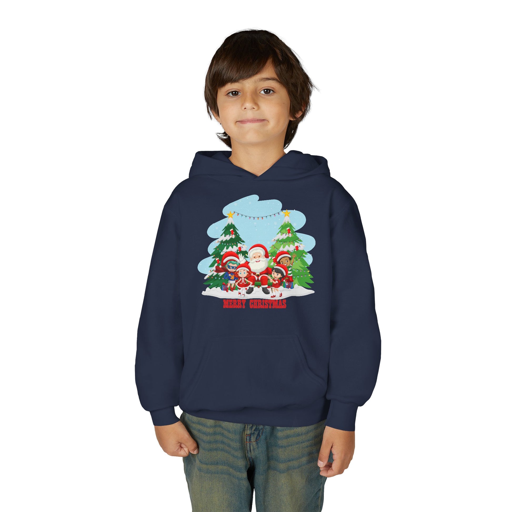 Youth Heavy Blend Hooded Sweatshirt - Super kiddo with santa claus Merry christmas