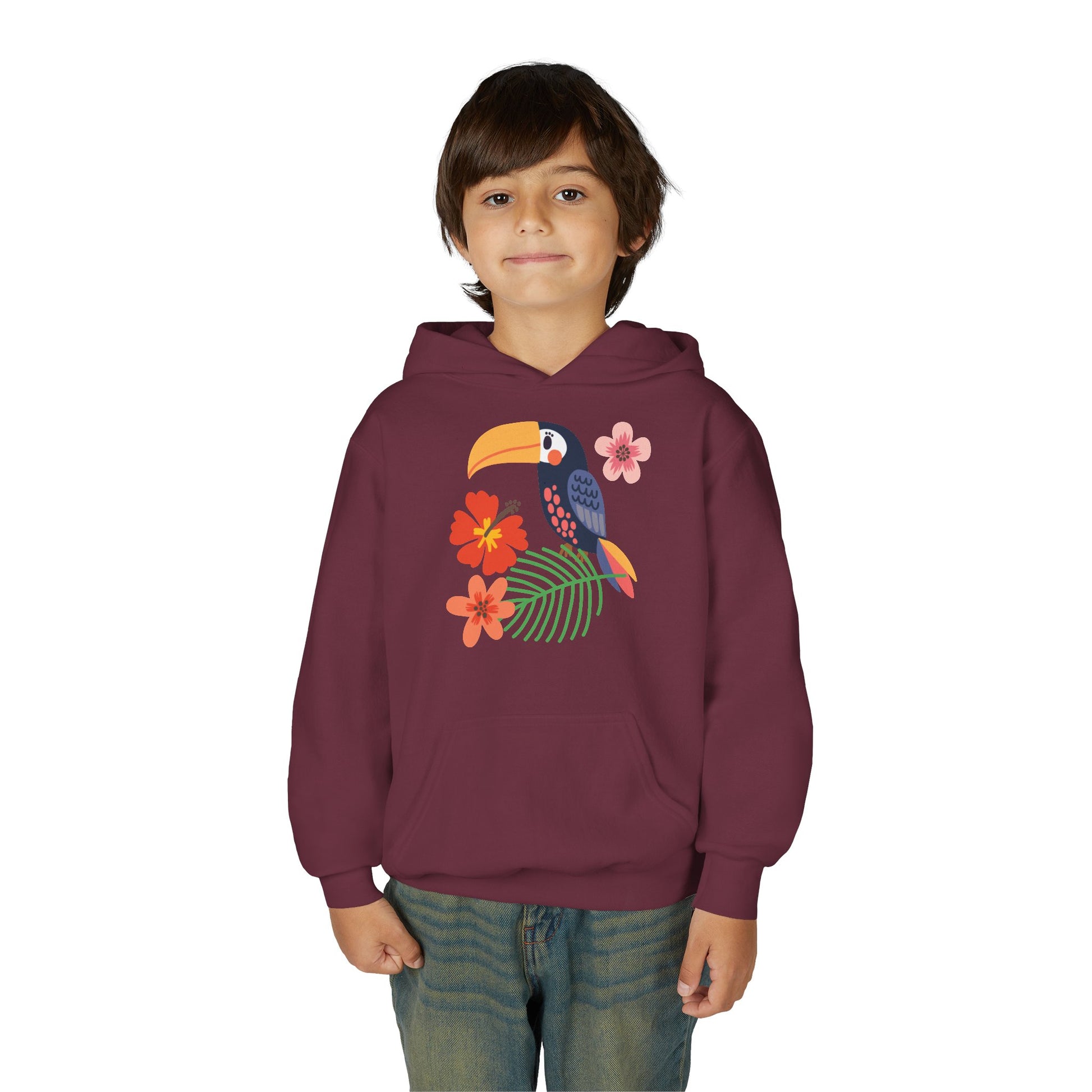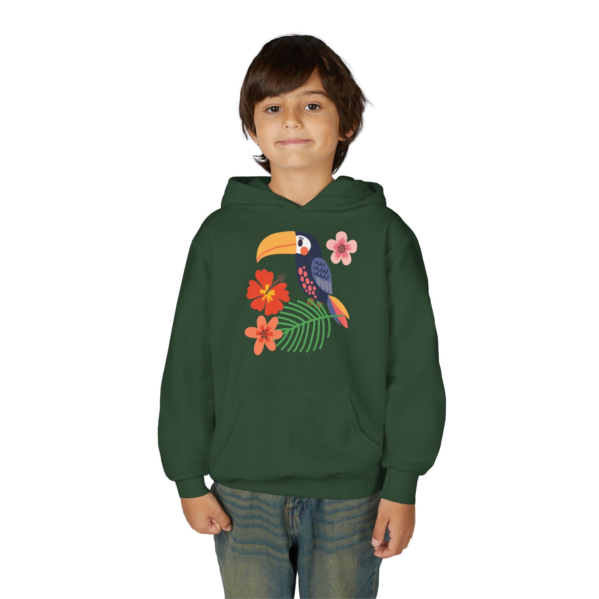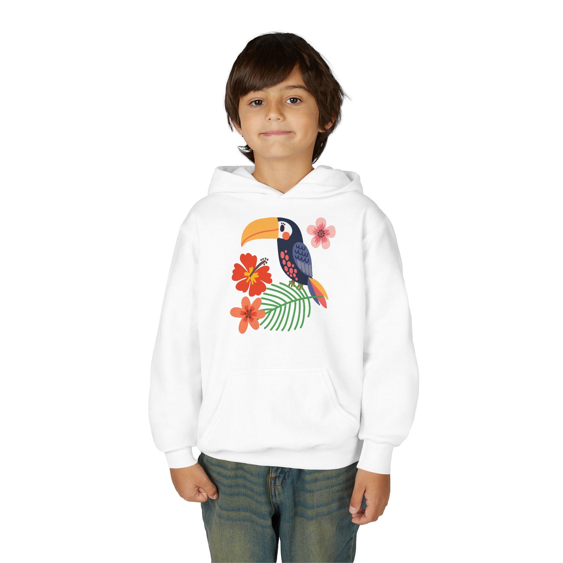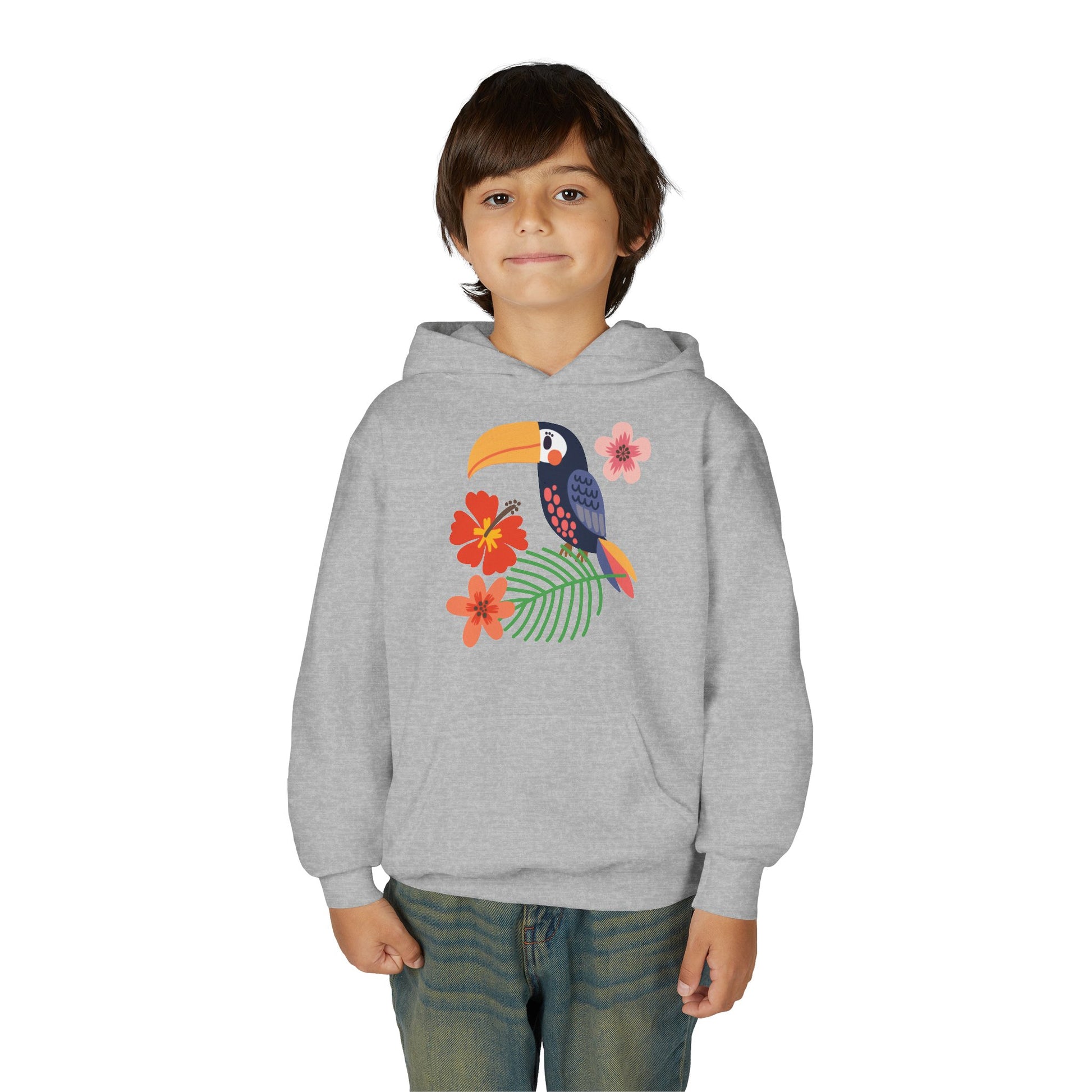Wrap your little ones in comfort and style with this Youth Heavy Blend Hooded Sweatshirt. Designed for active children, this cozy hoodie is perfect for chilly days at school or fun outdoor adventures. The vibrant, playful design featuring a toucan and tropical flowers adds a cheerful touch, sparking joy and creativity. Ideal for casual wear, it's suitable for kids ages 5 to 14, making it a fantastic choice for birthdays, family gatherings, or holiday celebrations. This sweatshirt effortlessly combines style and comfort, becoming a beloved staple in your child's wardrobe. Perfect for pairing with jeans or leggings, it's an essential piece for any young trendsetter!