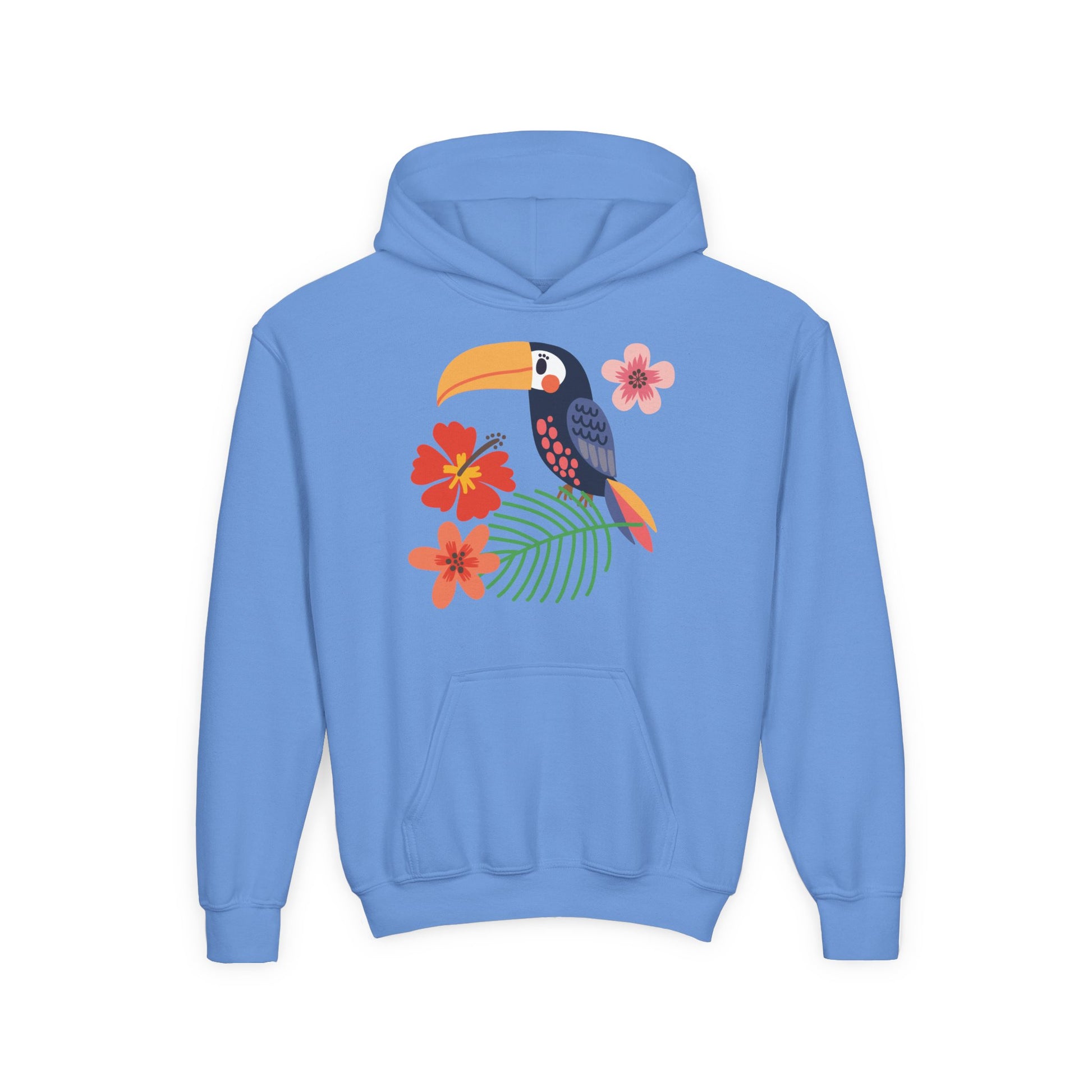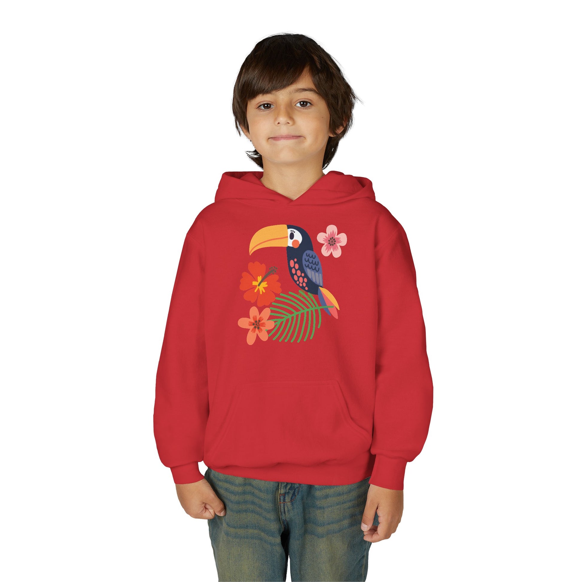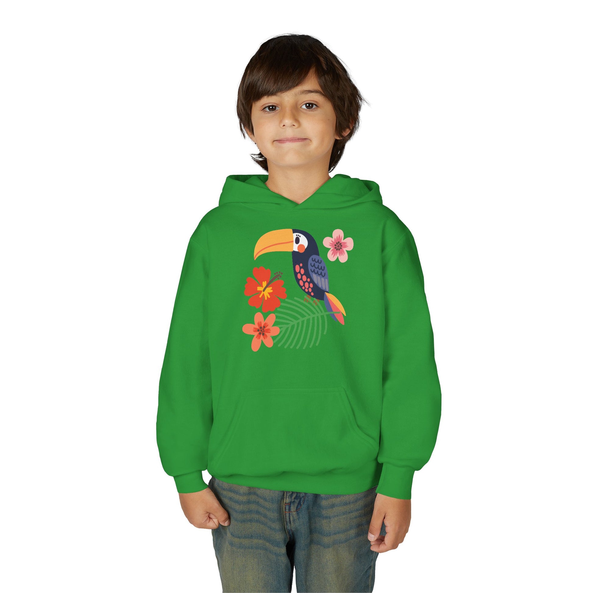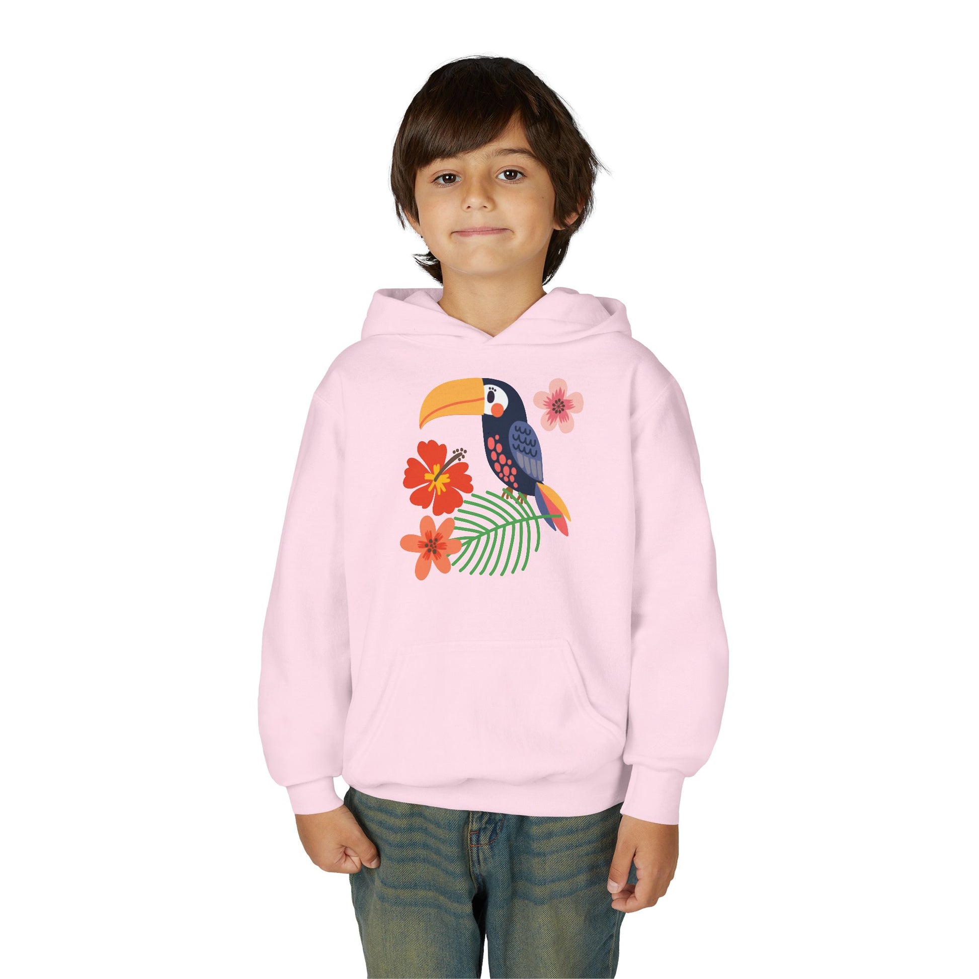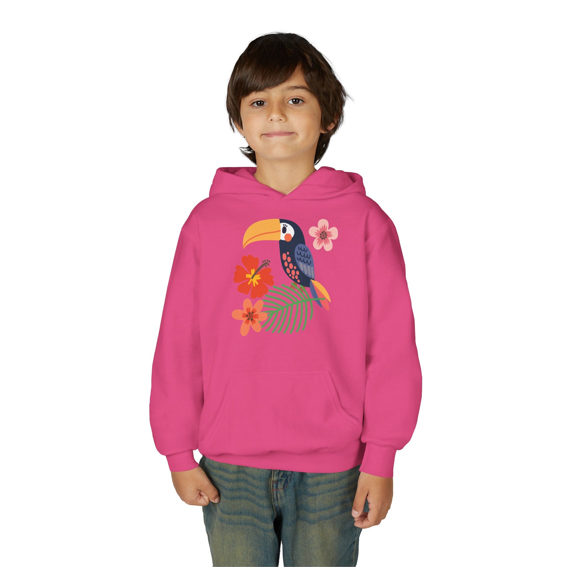 Wrap your little ones in comfort and style with this Youth Heavy Blend Hooded Sweatshirt. Designed for active children, this cozy hoodie is perfect for chilly days at school or fun outdoor adventures. The vibrant, playful design featuring a toucan and tropical flowers adds a cheerful touch, sparking joy and creativity. Ideal for casual wear, it's suitable for kids ages 5 to 14, making it a fantastic choice for birthdays, family gatherings, or holiday celebrations. This sweatshirt effortlessly combines style and comfort, becoming a beloved staple in your child's wardrobe. Perfect for pairing with jeans or leggings, it's an essential piece for any young trendsetter!
