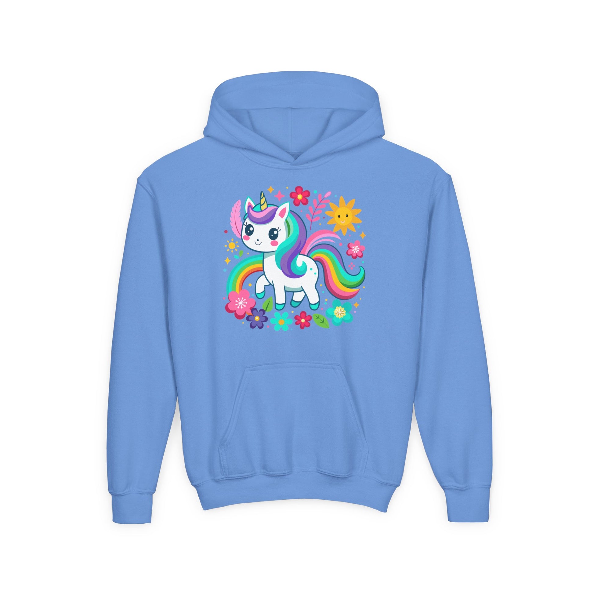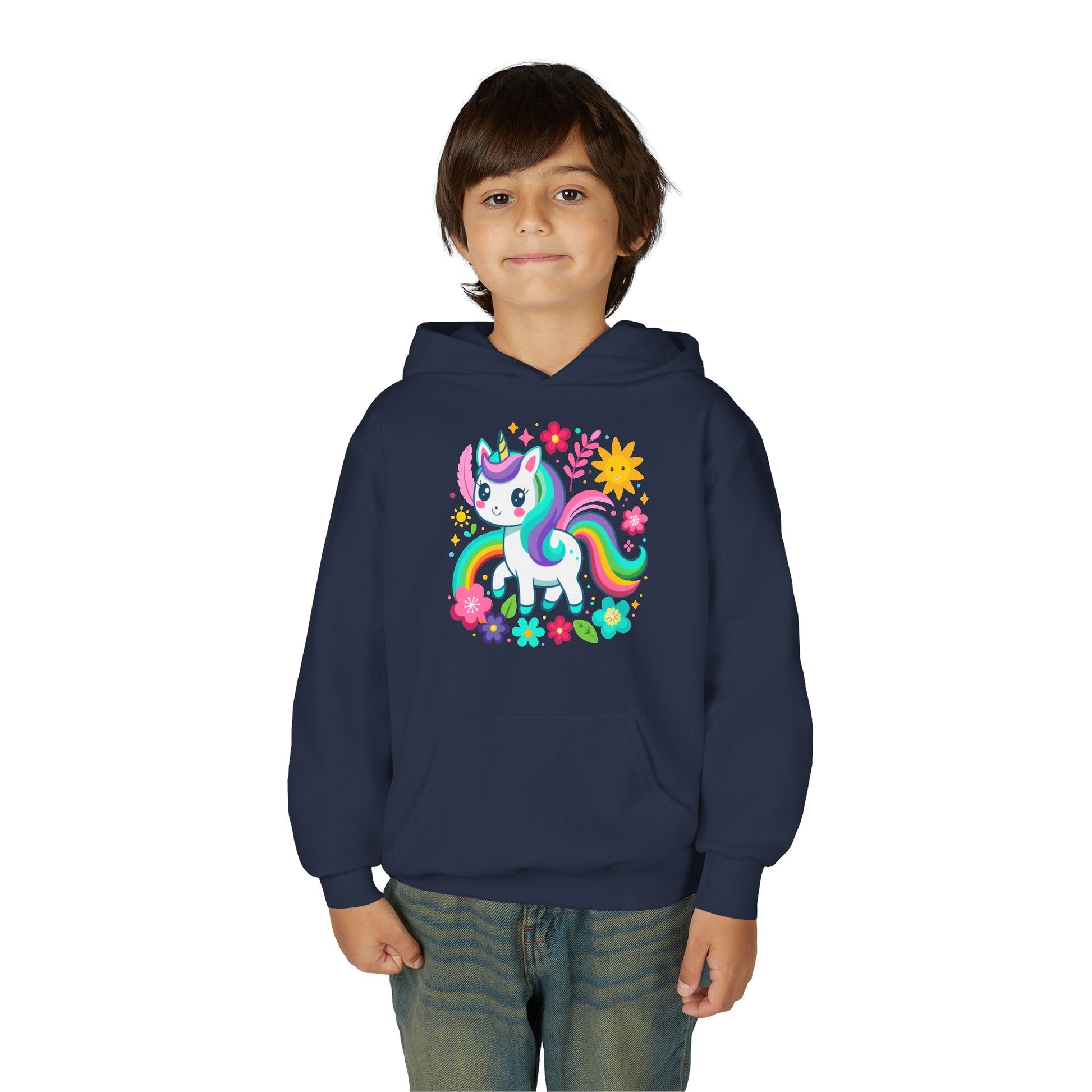 Youth Heavy Blend Hooded Sweatshirt - Unicorn with flowers